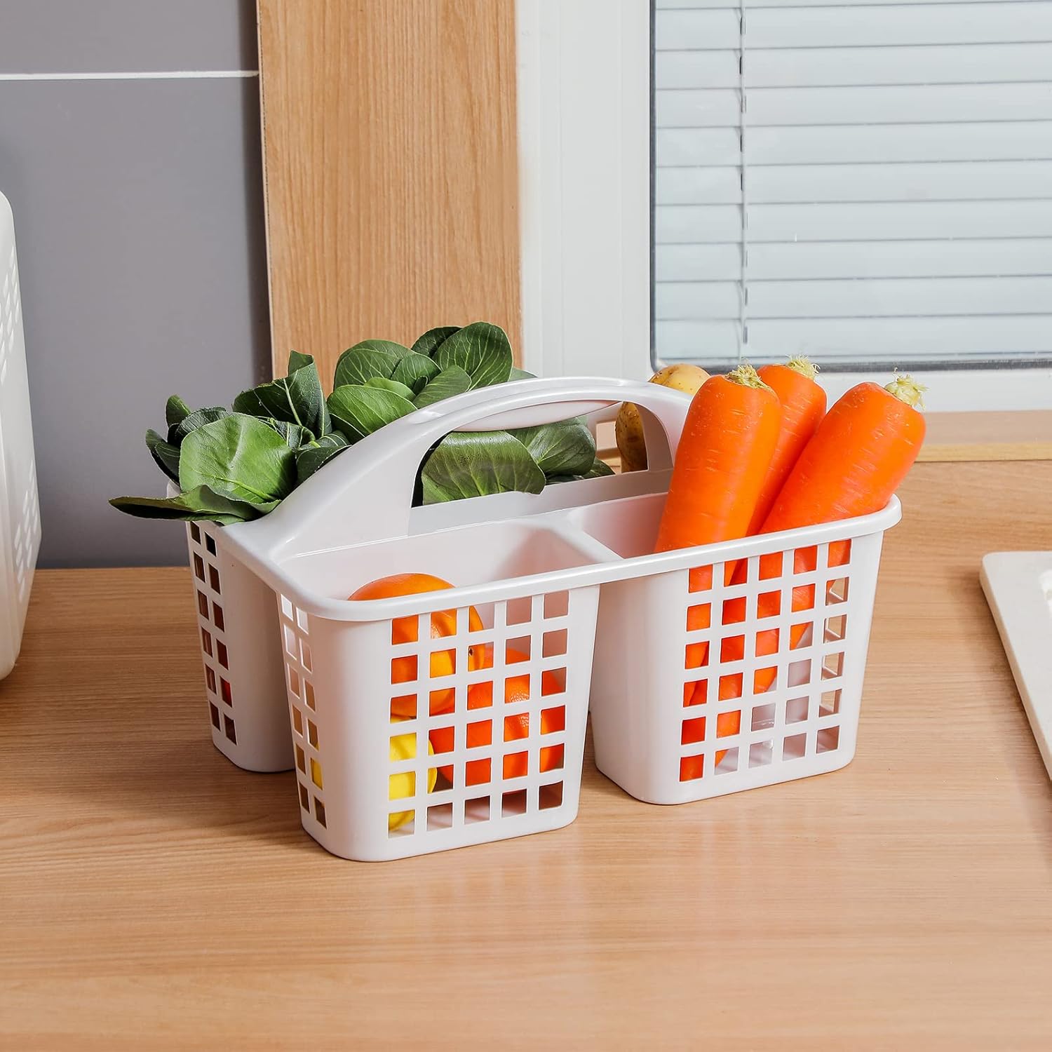 - Plastic Basket Size: 12.4 in L x 8.9 in W x 7.4 in H, 3 compartments designed to organize and hold what you need, easy to use and reach; light weight, easy to clean.