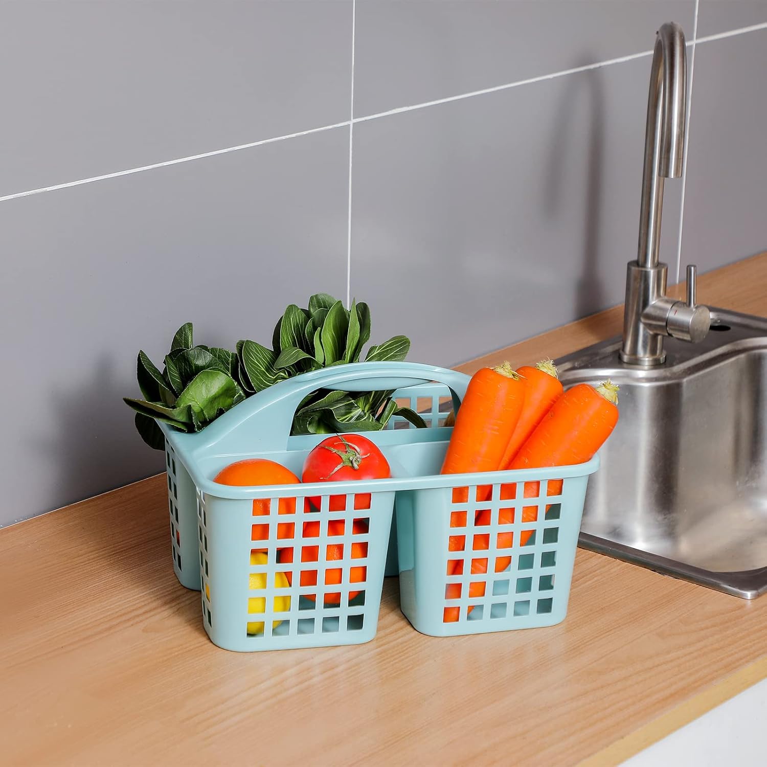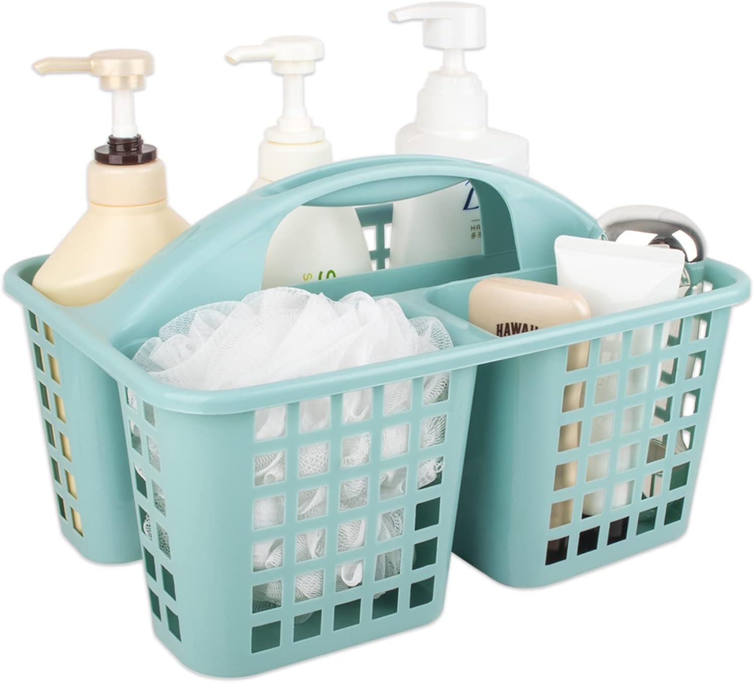 Portable Shower Caddy Basket with Compartments Cleaning Supplies Organizer with Handle Plastic Storage Divided Tool Bin for Bathroom, Bedroom, Kitchen, College Dorm, Garden, Under Sink, Light Blue