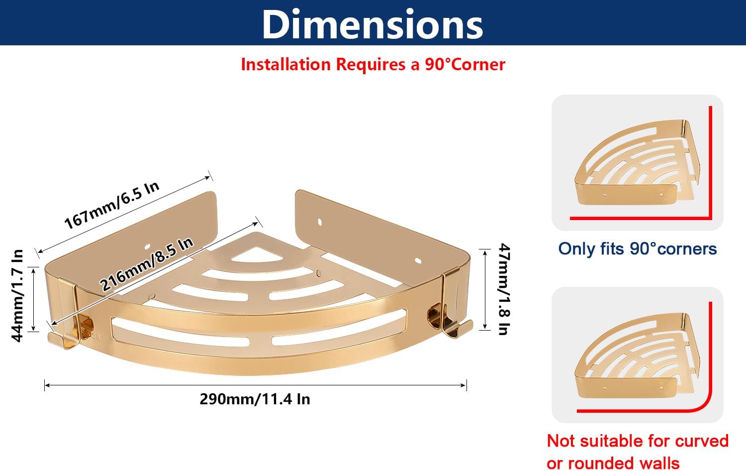 - SAVE SPACE: The corner design makes your bathroom looking more tidy and clean; It provides enough space to hold your bathroom products; Extra 2 hooks are suitable for hanging robe towels; And it’s also suitable for kitchen and bedroom