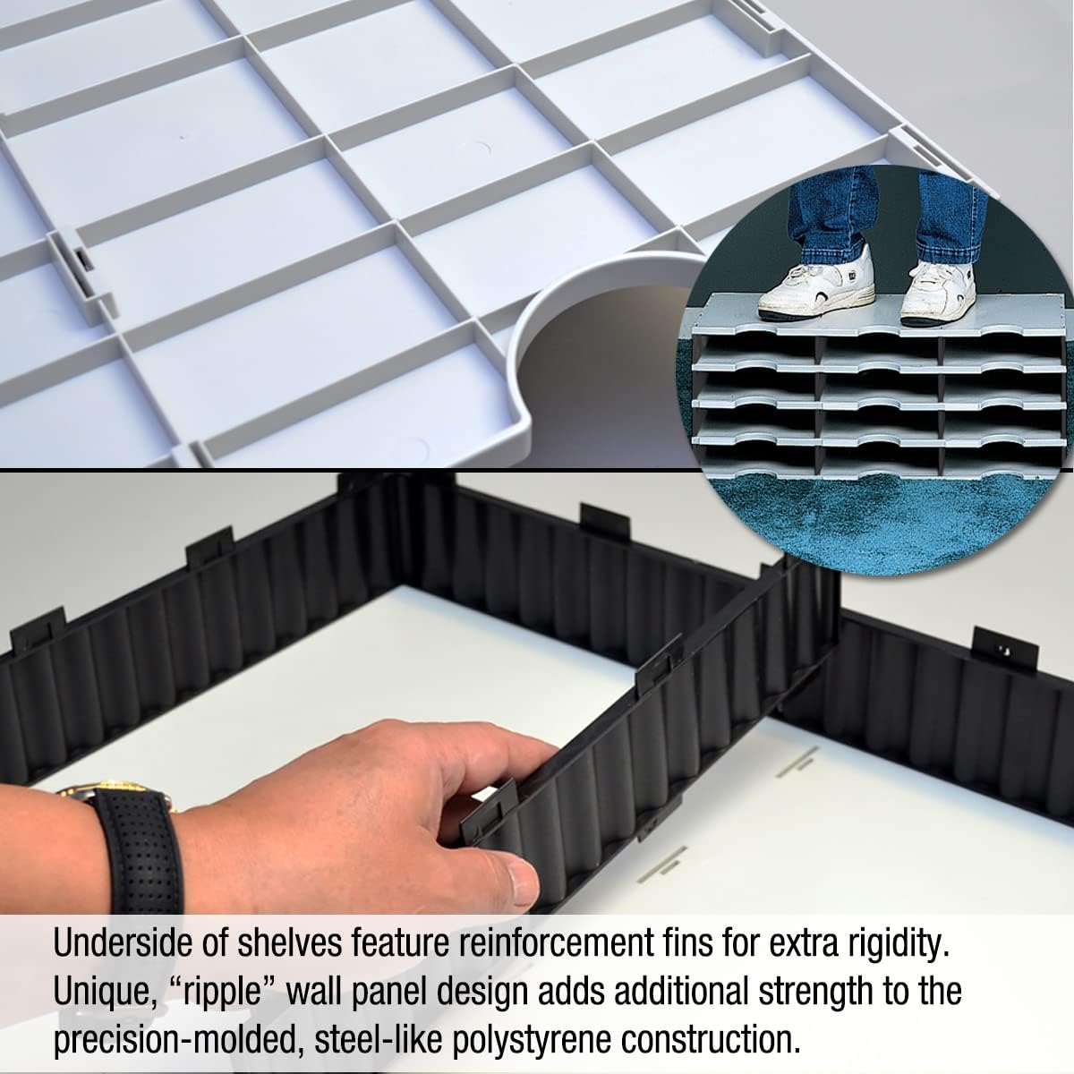 - THE STRENGTH OF STEEL AT A FRACTION OF THE COST - Precision molded in Switzerland, each TierDrop platform features underside reinforcement fins for extra strength and superior rigidity. The unique rippled side and back wall design combine with the platforms to create a literature organizer that will stand the test of time. No dented or rusted steel and no sagging corrugated cardboard.