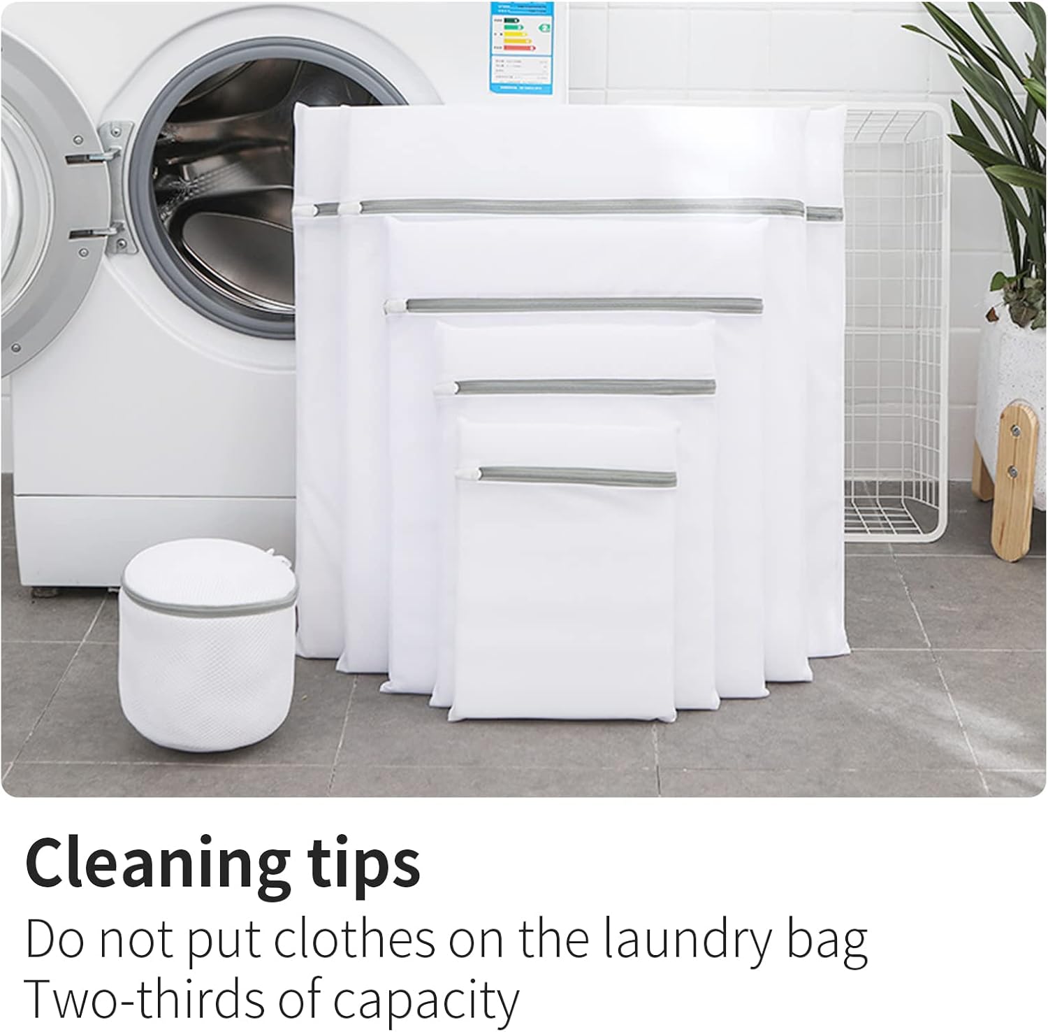 - 【Warm tips】 About 70% of the delicates laundry bag should be filled with clothes. Do not load the washing machine too full, it has a better decontamination ability when it is filled with 70% clothes. Please do not pull the zipper on the mesh laundry bags to the end to prevent the zipper from falling off.