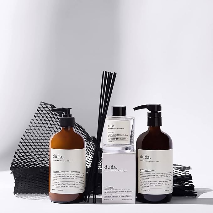 Duša Lemongrass Reed Diffuser & Sticks - 5 Fl Oz Essential Home Fragrance for Bathroom, Office & Living Spaces – Stylish & Long-Lasting Room Air Freshener - Ideal for Housewarming & Special Occasions