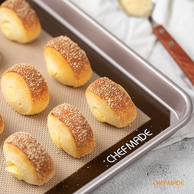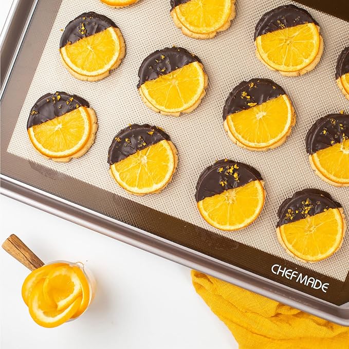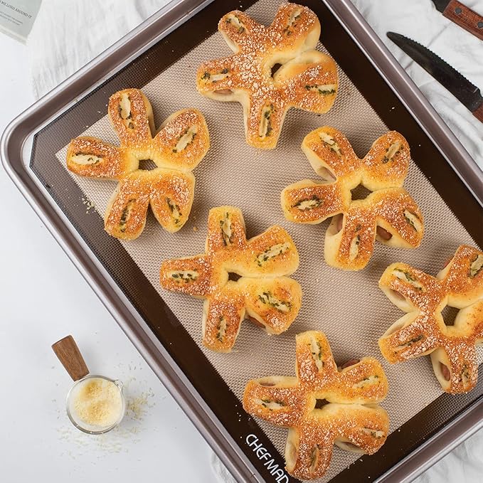 CHEFMADE 17-Inch Silicone Baking Mat with Measurements, Non-stick Heat Resistant Rolling Dough Mat, for Pastry,Pizza, Fondant and Pie Crust Making 11.7" x 16.7" (Brown)