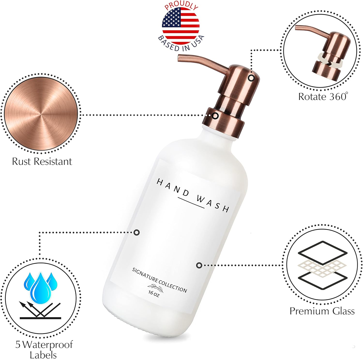 - ✅ U.S.A. BENEFITS: We love and take pride in our glass soap dispensers with pumps. Our dish soap hand soap dispenser set comes with a 10-year warranty and we are proudly based in the USA. If you’re at all unsatisfied with your dish and hand soap dispenser set, please contact us and we will resolve the issue.