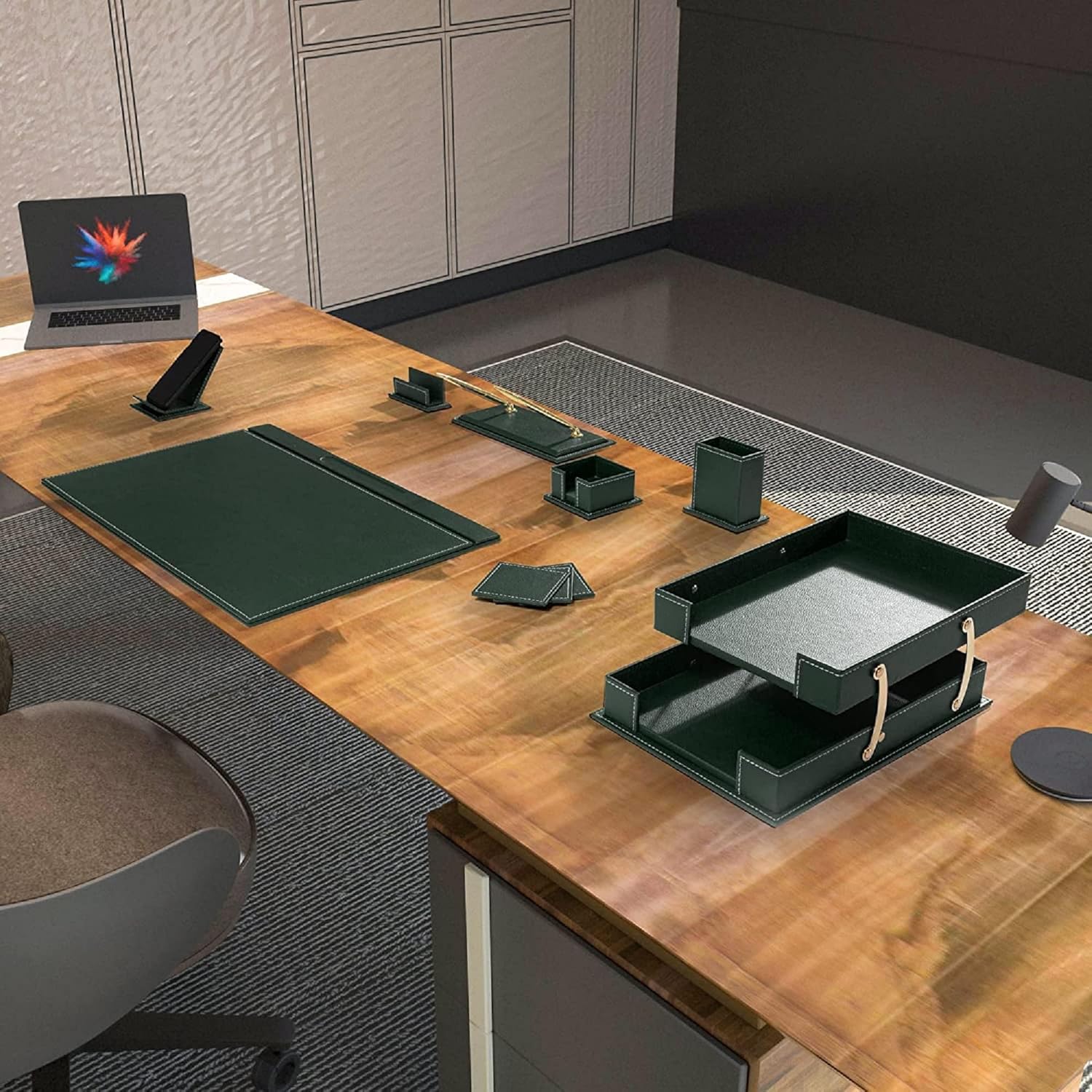 MOOGCO Bonded Set Luxury Leather Desk Pad & Desk Organization Essentials Desk Organizer Leather Desk Organizer (Green)