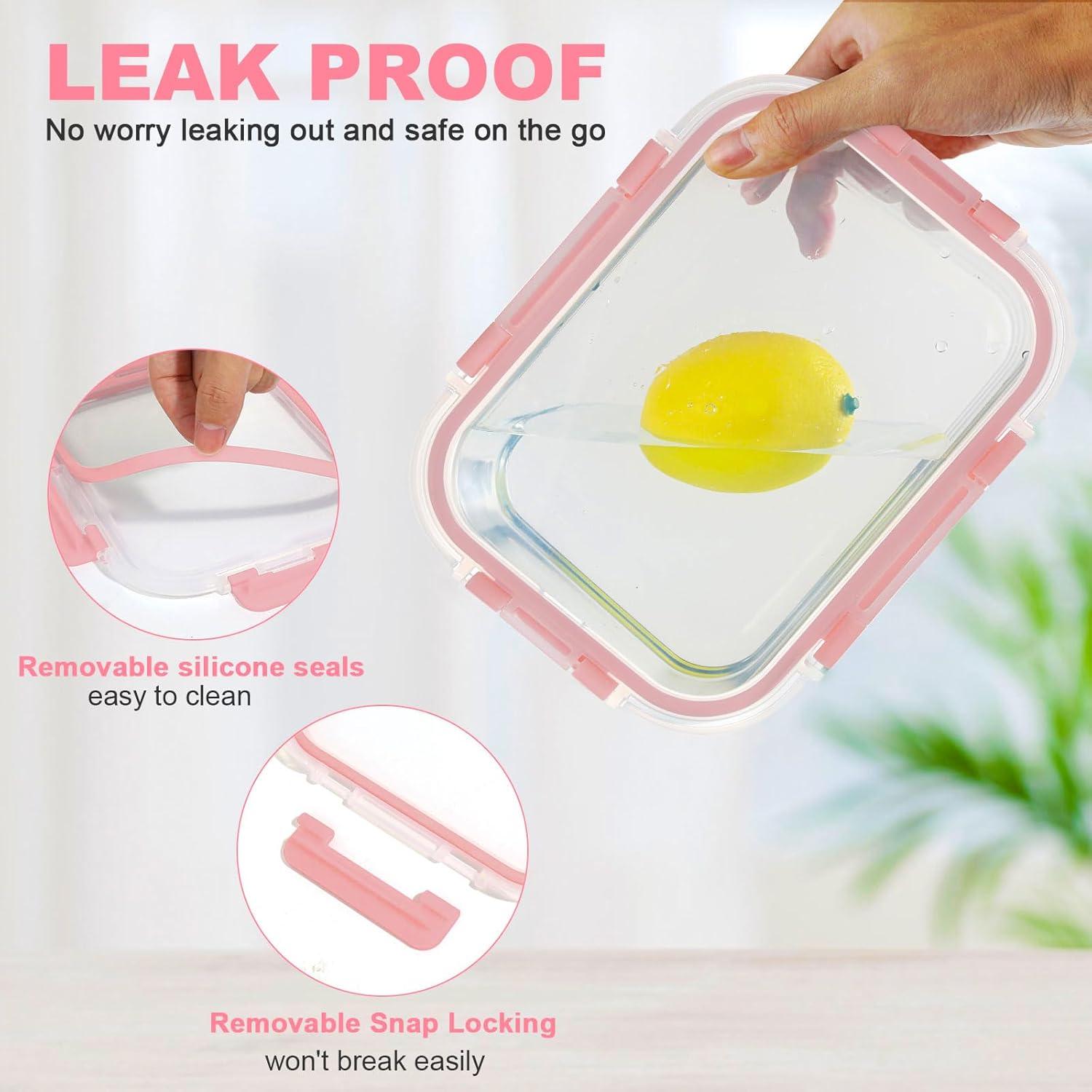 KOMUEE 30 Pieces Glass Food Storage Containers Set, Meal Prep Containers Set with Snap Locking Lids, Airtight Glass lunch Containers, Microwave, Oven, Freezer & Dishwasher,Pink