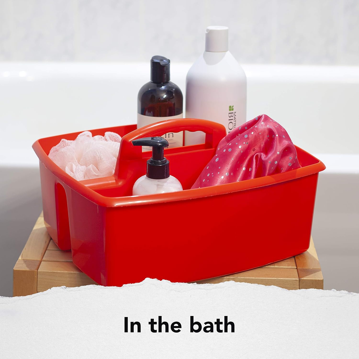 Storex 2-Compartment Large Craft Caddy – Multipurpose Classroom Organizer with Handle, Red, 1-Pack (00954C06C)