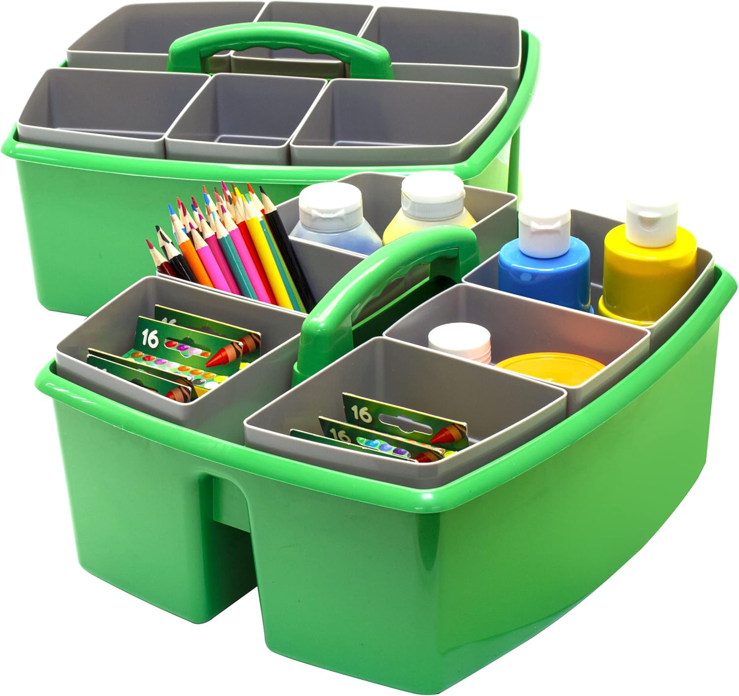 Storex Large Classroom Craft Caddy with Cups, 13 x 11 x 6.575 Inches, Green, Case of 2 (00983A02C)