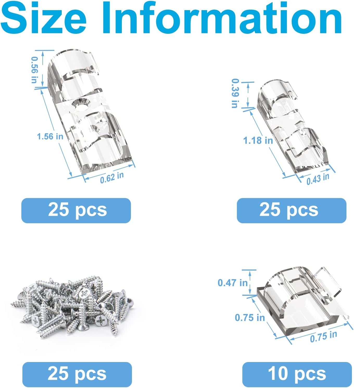 - 【Assorted Sizes】 Set of 60 PCS: 25 pcs large cable clips_02 (25 pcs screws), 25 pcs medium cable clips_02, 10 pcs adhesive cable clips_01 for the corner. Enough quantity and size to meet your daily use requirements.