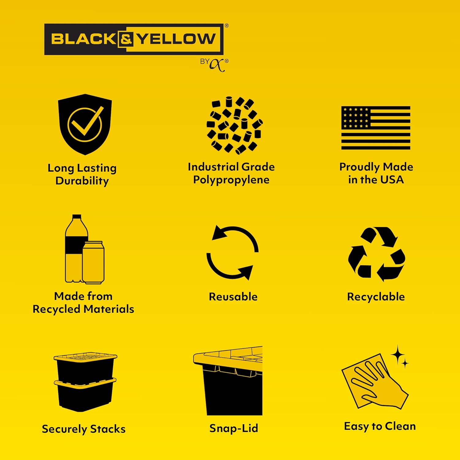 CX BLACK & YELLOW, 5-Gallon Heavy Duty Bucket Tough Storage Container & Snap-Tight Lid, (14.9"H x 12"W x 13"D), Weather-Resistant Design and Stackable Organization Tote [6 Pack]