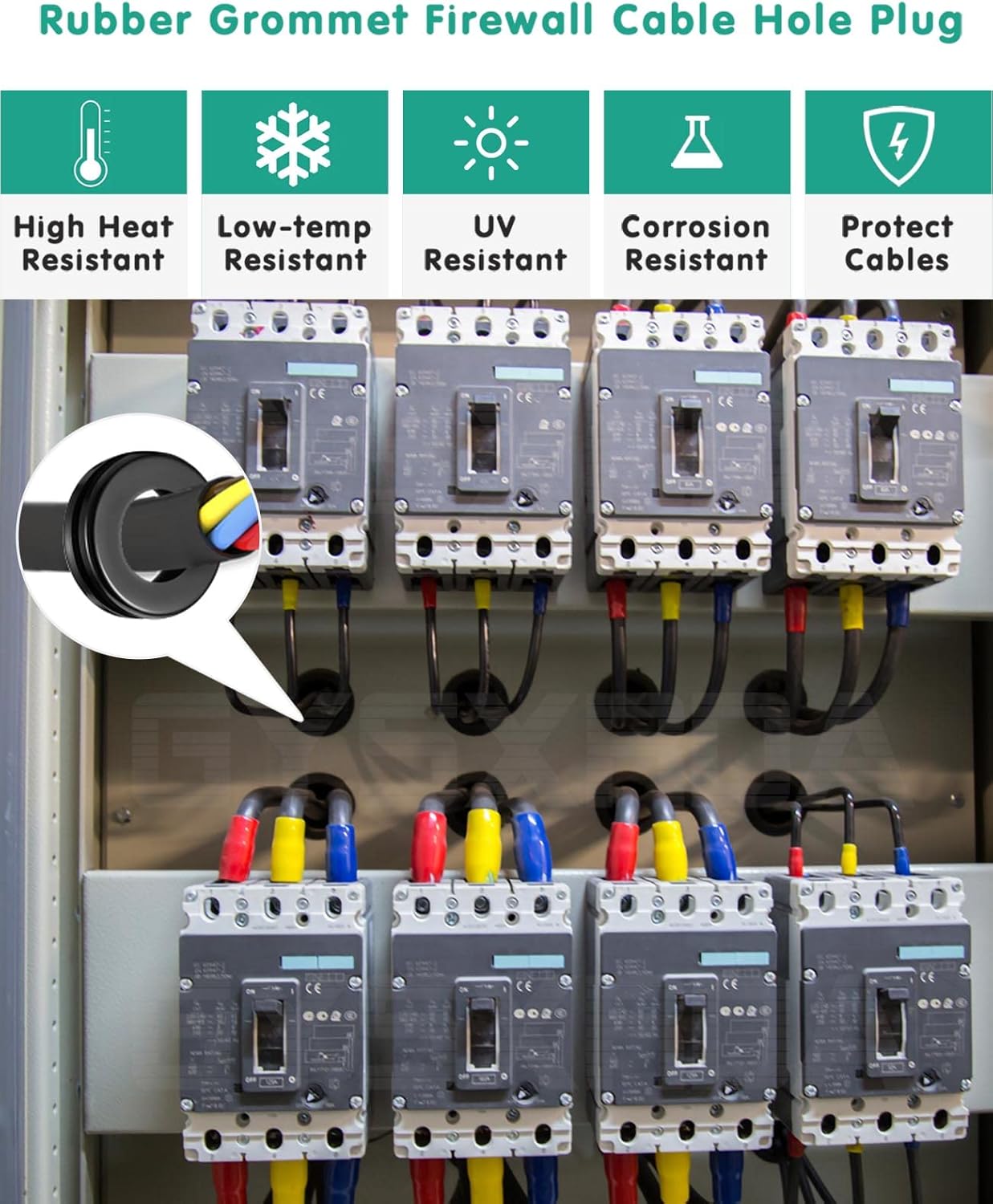 - π΅ GREAT FUNCTION: Closed rubber grommet are commonly used to protect or cover holes and to protect cables or wires from sharp corners or edges, SAFELY and EFFECTIVELY GRIPS WIRE to protect against fire hazards. automotive firewall grommet βare also important parts in automotive applications, it can also effectively reduce vibration and are used to seal different important under-the-hood and body applications.