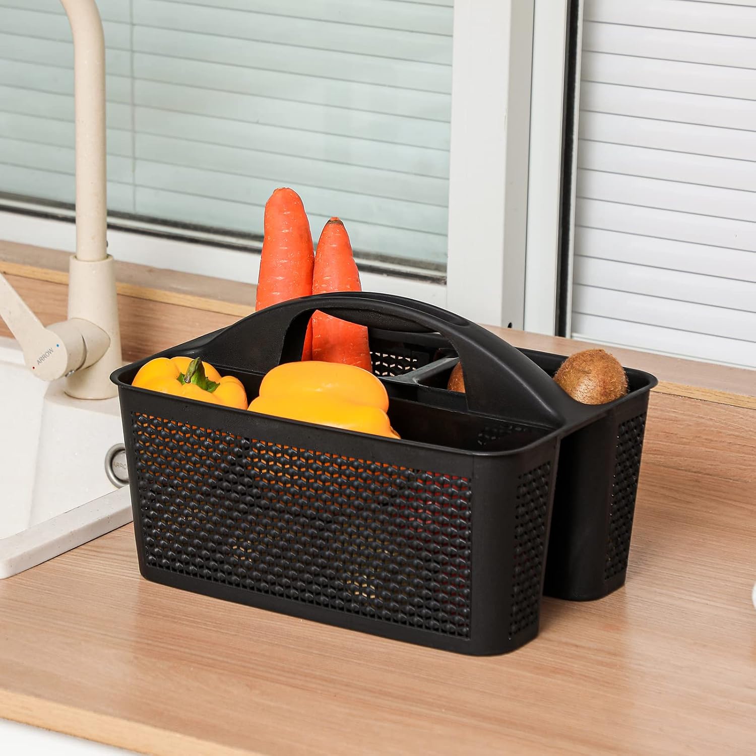UUJOLY Plastic Portable Shower Caddy Basket Bucket, Cleaning Shower Basket with Handle Compartments Storage Basket Organizer for Bathroom Kitchen College Dorm Sink, Black