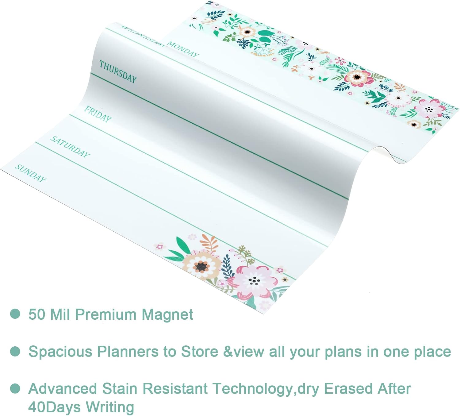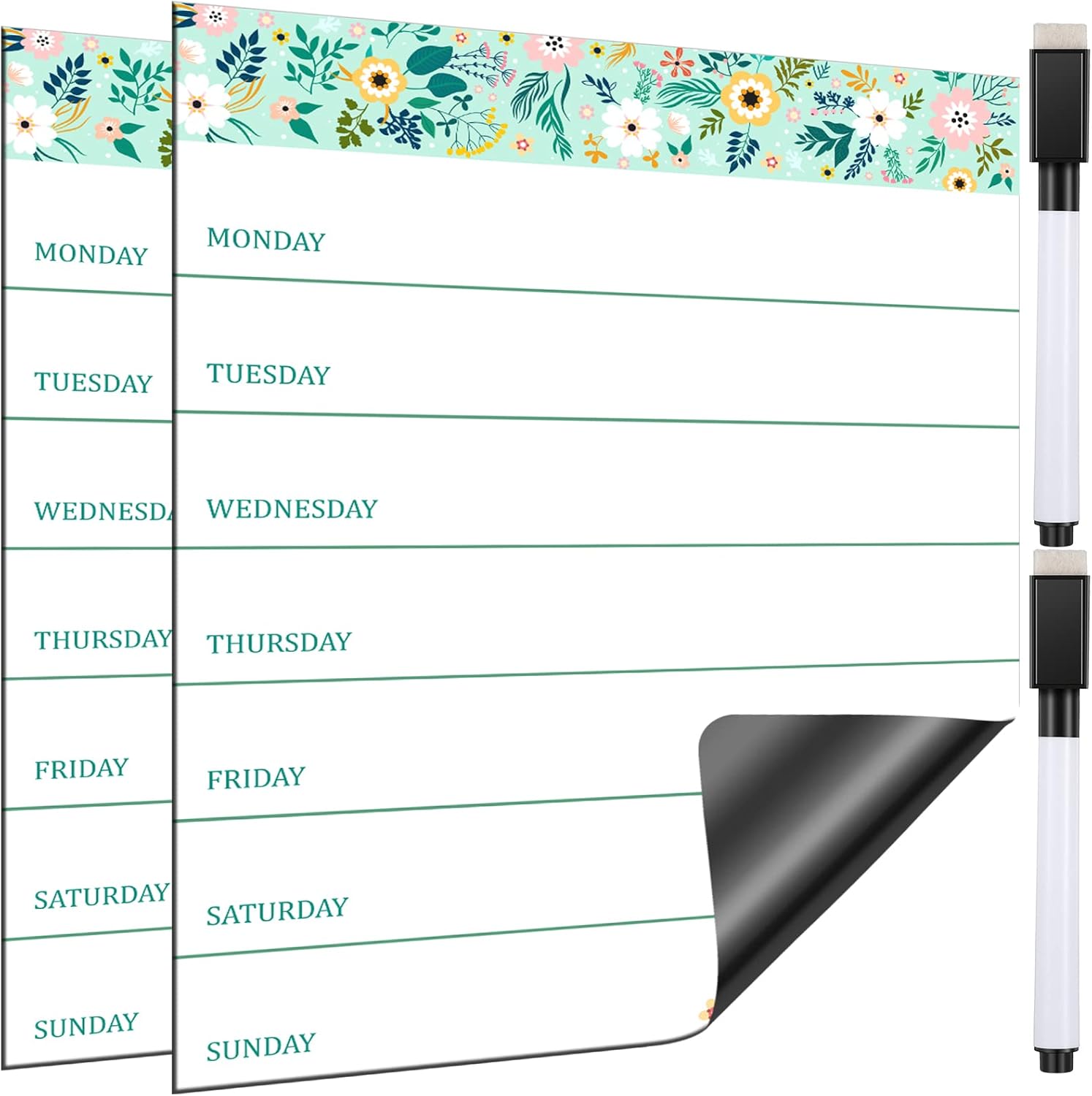 Outus 2 Pieces Magnetic Weekly Dry Erase Boards Erasable Weekly Calendars Whiteboard Planners with 2 Pieces Markers for Office, Home, School Supplies (Flower Style)