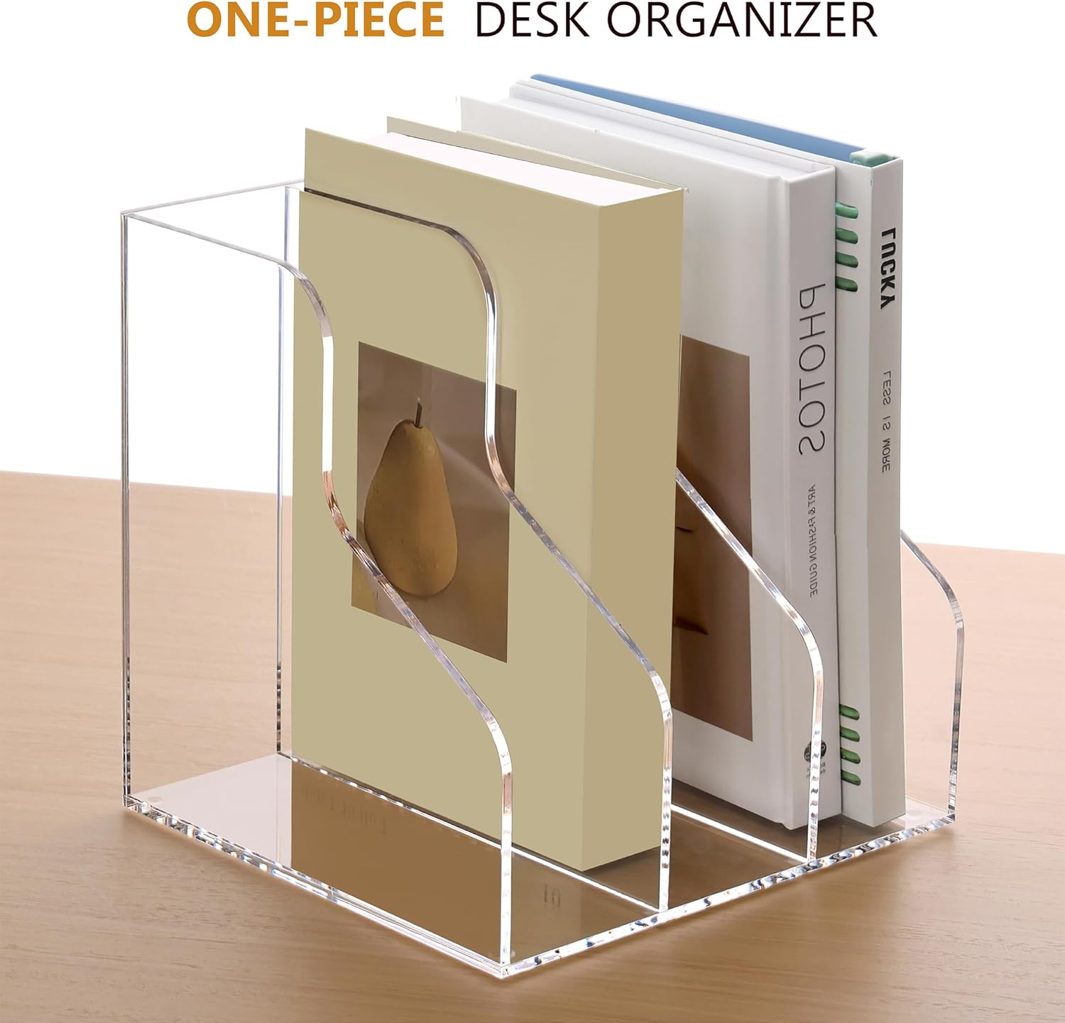 - Sturdy&Durable Acrylic Desk File Organizer:This file rack can holds standard folders & magazines vertically in 3 compartments . Perfect as binder organizer or books display