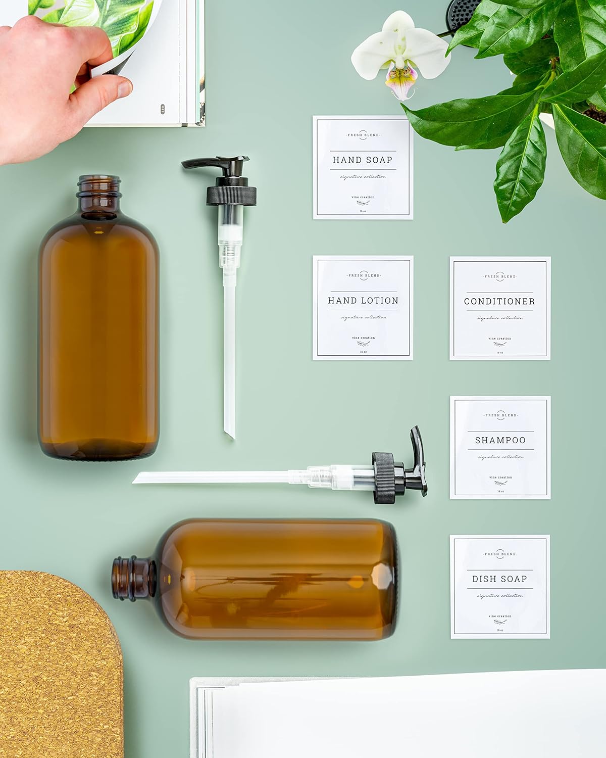 - PREMIUM WATERPROOF LABELS - Six high-end white labels, featuring two for hand soap, alongside dish soap, shampoo, conditioner, and hand lotion. Crafted for daily use, these premium 3" x 3" labels add a touch of elegance.