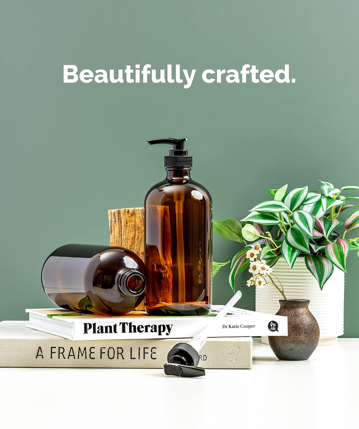 - UNRIVALED CONSTRUCTION - Set of 2 premium thick glass soap dispenser with pump. 16 Oz fortified amber bottles, refillable soap dispenser for daily use. Vine Creations soap dispensers are Lead-free.