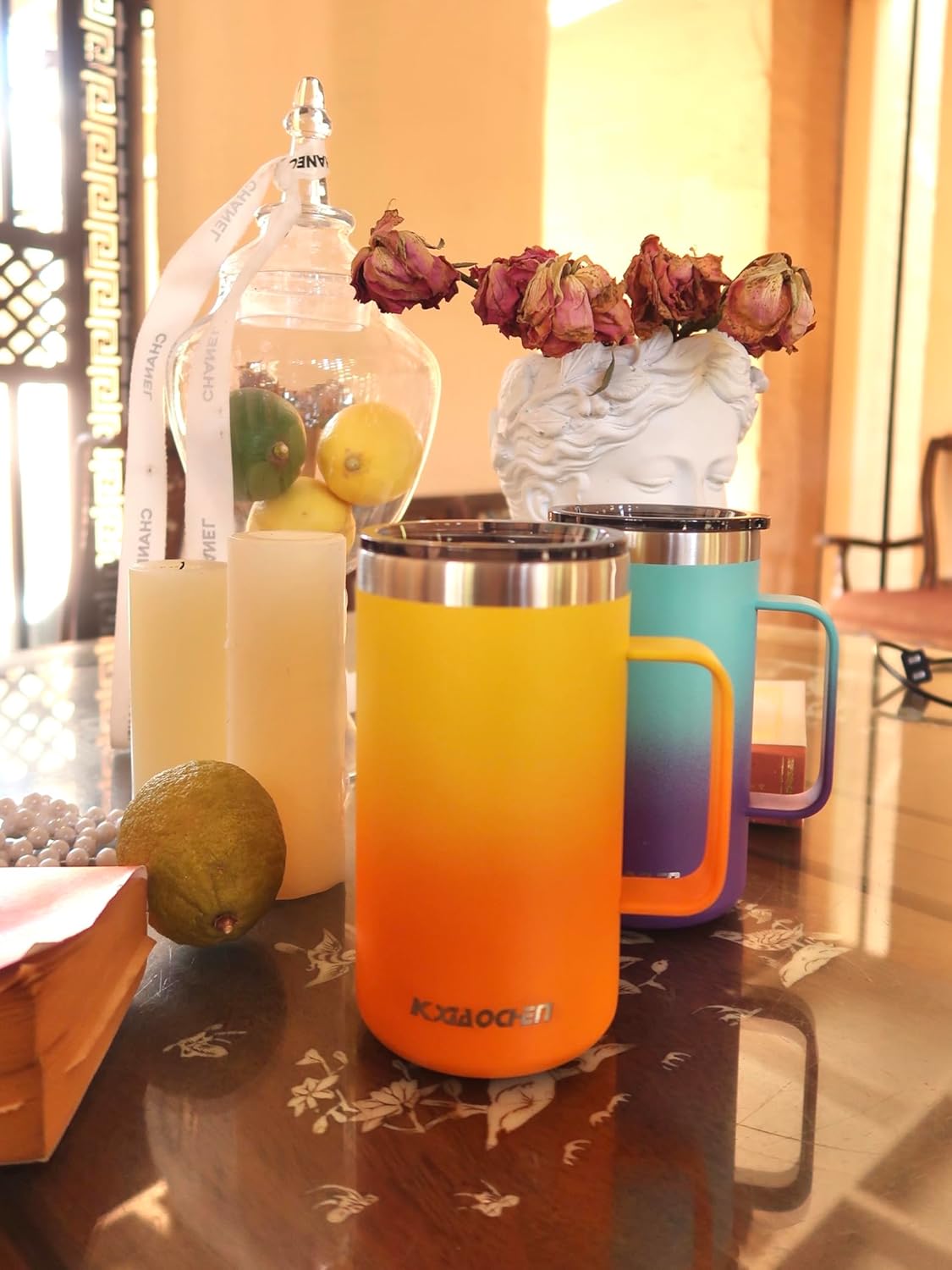- PREMIUM NON-SLIP HANDLE: Comfortable handle designs fit most hands, making it becomes the great outdoor camping mug and the coffee mugs with lid at home. Coffee tumbler with handle is Not Microwavable.