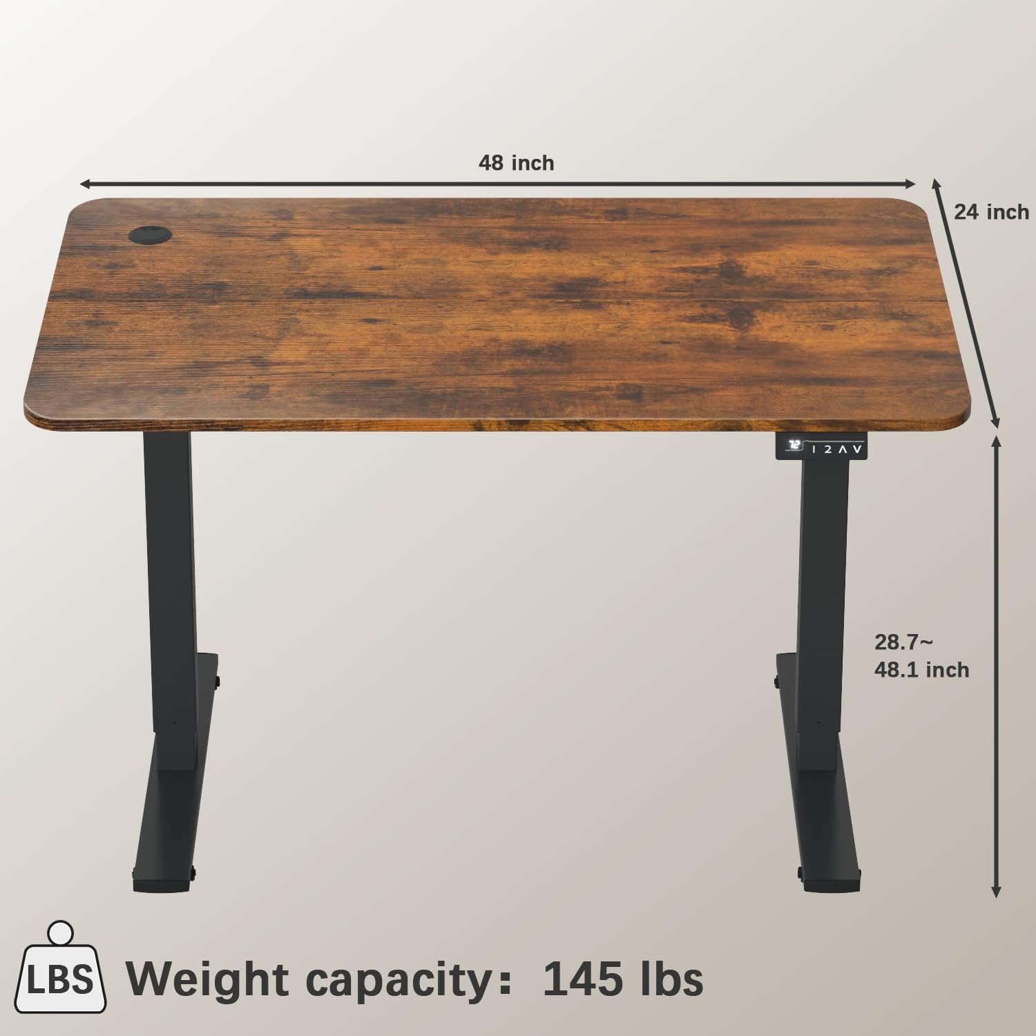 Furmax Electric Height Adjustable Standing Desk Large 48 x 24 Inches Sit Stand up Desk Home Office Computer Desk Memory Preset with T-Shaped Metal Bracke, Brown