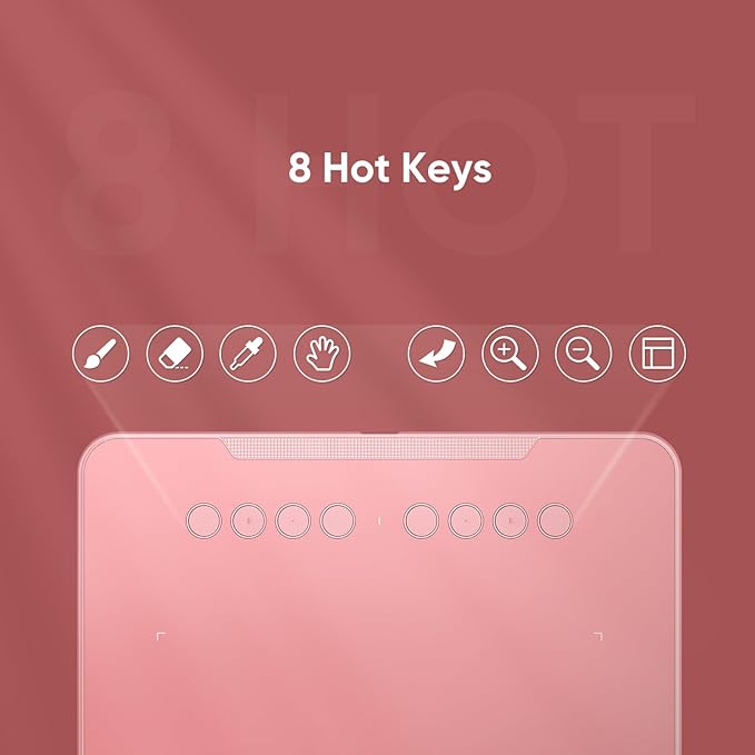 - Computer Graphics Tablet: Customized Shortcuts-The eight, round, customizable shortcut keys that fits easily to your finger tip can be programmed to many different software programs