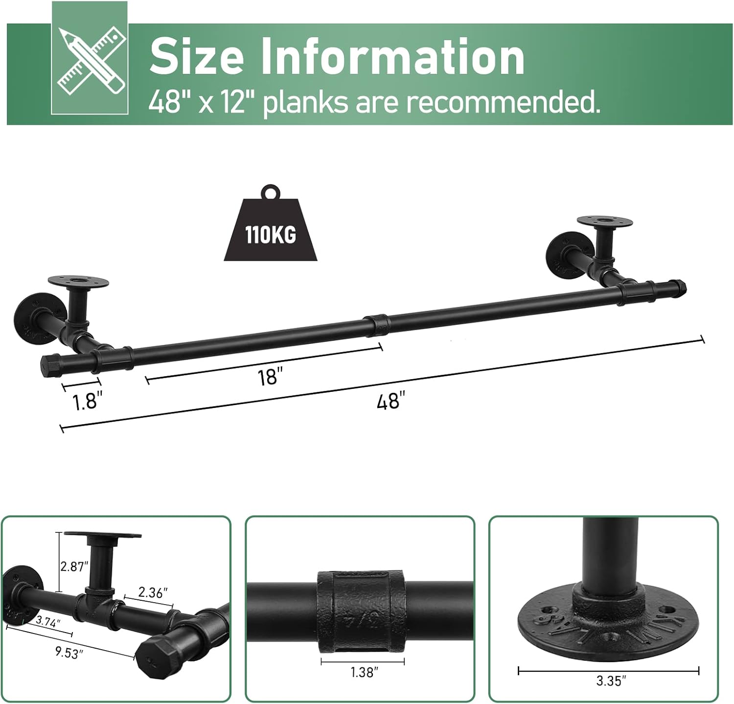 - 【Size Details】: The total length of the wall clothes rack is 48", the total width is 10.6" , the inside diameter of the pipe is 0.7" , the pipe is 0.04" thick, base is 3.3" width. Hanger top with 2 flanges for shelves, a 48-inch x 12-inch plank is recommended. For more detailed dimensions, please refer to our size infographic. We also have different lengths of mounted clothes rack, such as 36" / 48" / 54".