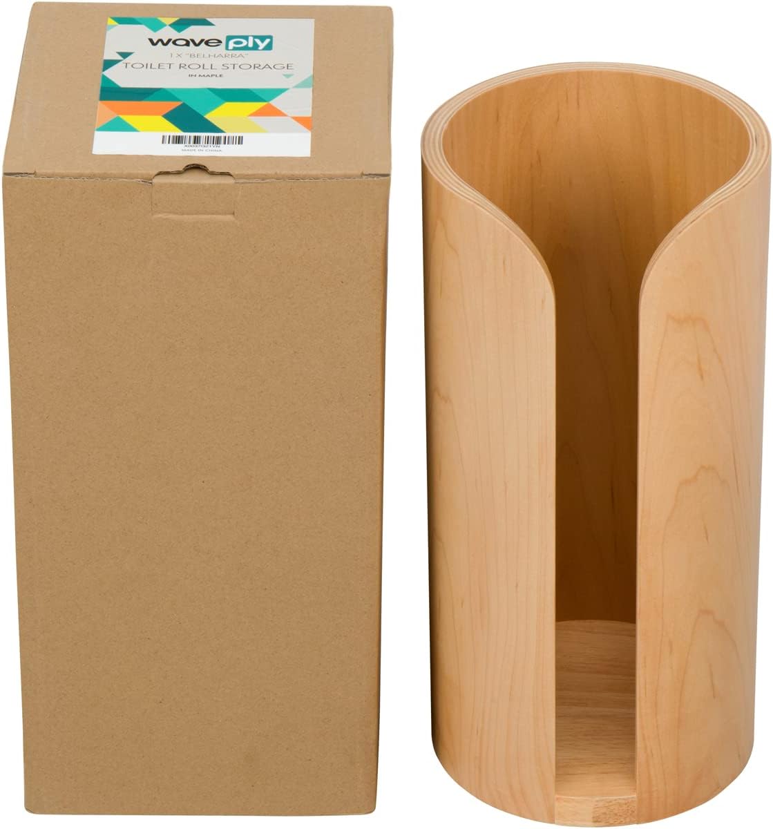 - Freestanding Toilet Paper Holder: to store your spare rolls. Made by bending responsibly sourced birch plywood with maple outer layer.
