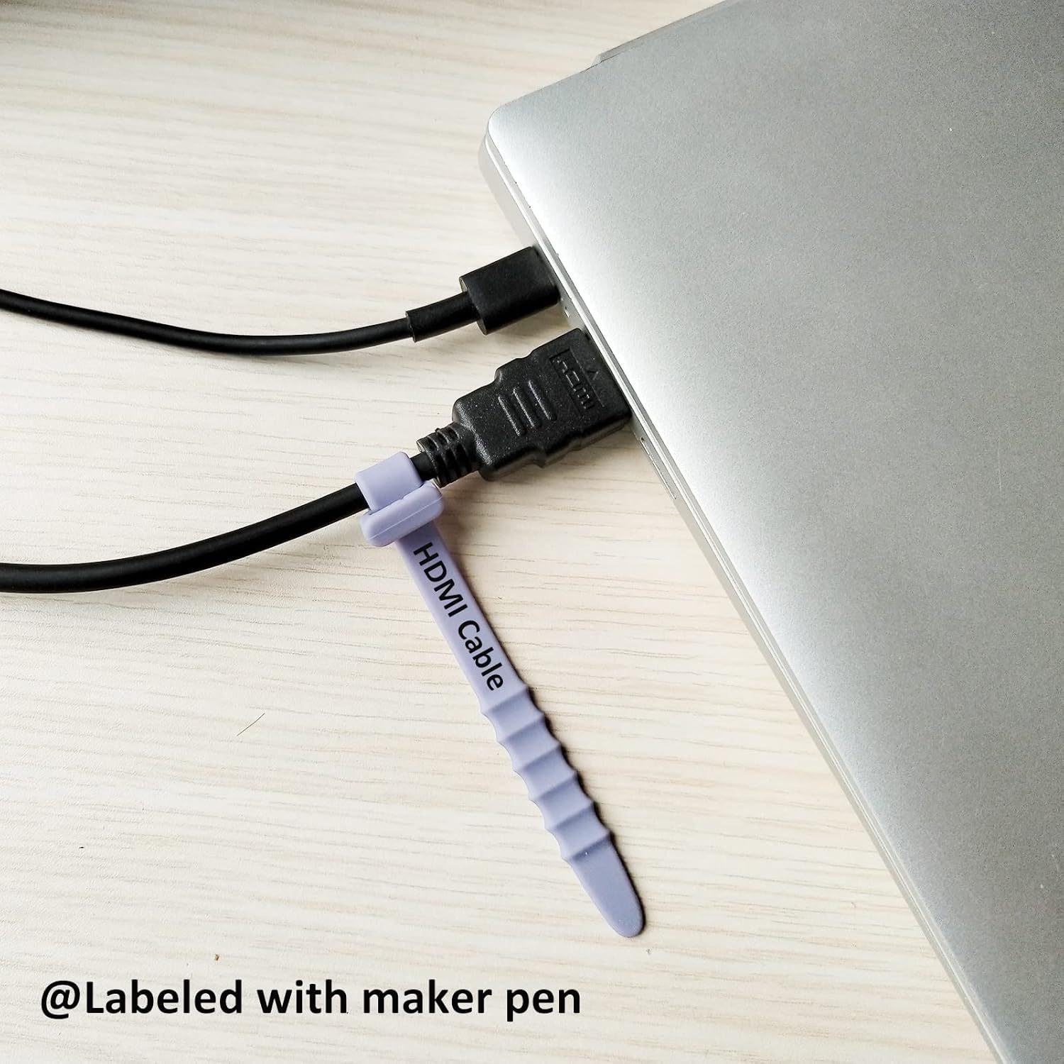 Silicone Zip Ties, Reusable Zip Ties, 20pcs Rubber Cable Ties Straps for Wire Management, Elastic Cable Organizer for Home Office Table Desk. 4.5” Cord Ties in White, Black, Pink, Purple and Blue