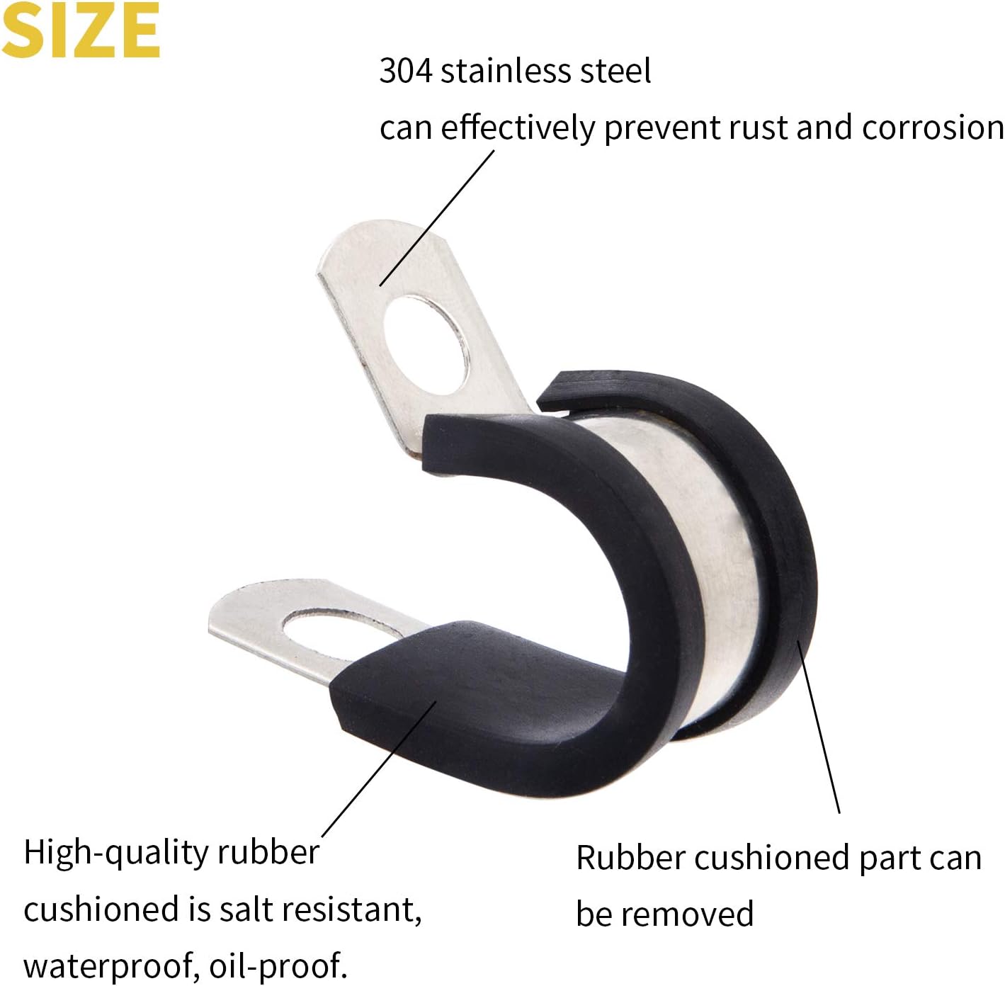 24pcs Wire Clamps 1 Inch, Stainless Steel 304 Cable Clamps Rubber Cushion, Pipe Clamp for wiring, lines, hoses and cables