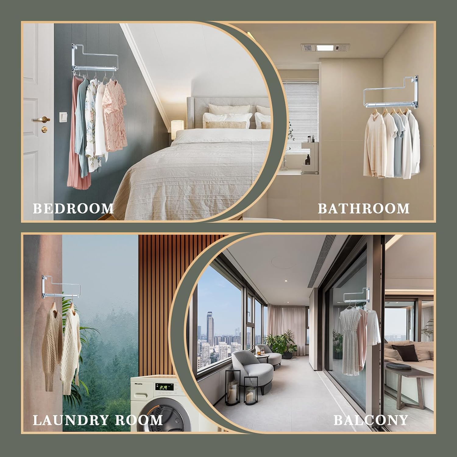 NEWRAIN Chrome Clothes Drying Rack, Wall Mounted Swing Arm Hanger for Laundry Room, Garage, Indoor & Outdoor Use
