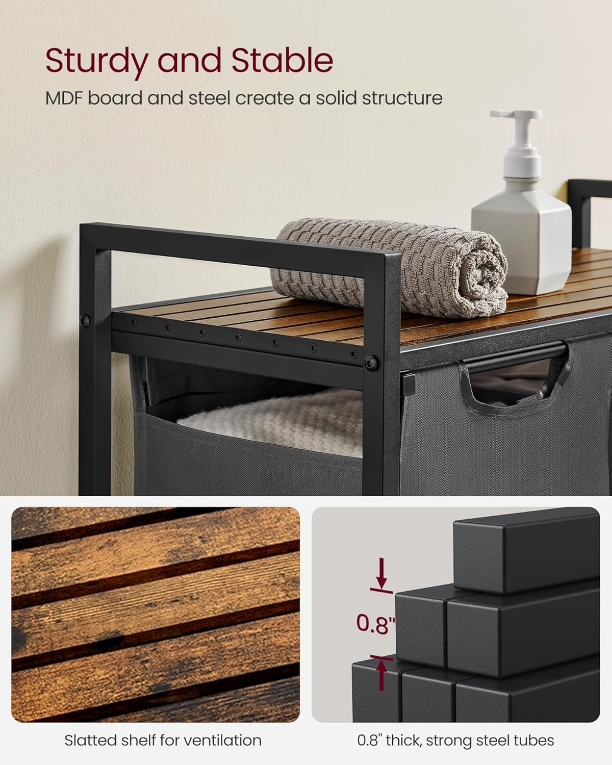 VASAGLE Laundry Hamper, Laundry Basket, Laundry Sorter with 2 Pull-Out and Removable Bags, Shelf, Metal Frame, 2 x 12.1 Gallons (46 L), 28.8 x 13 x 28.4 Inches, Slate Gray and Rustic Brown UBLH201G01