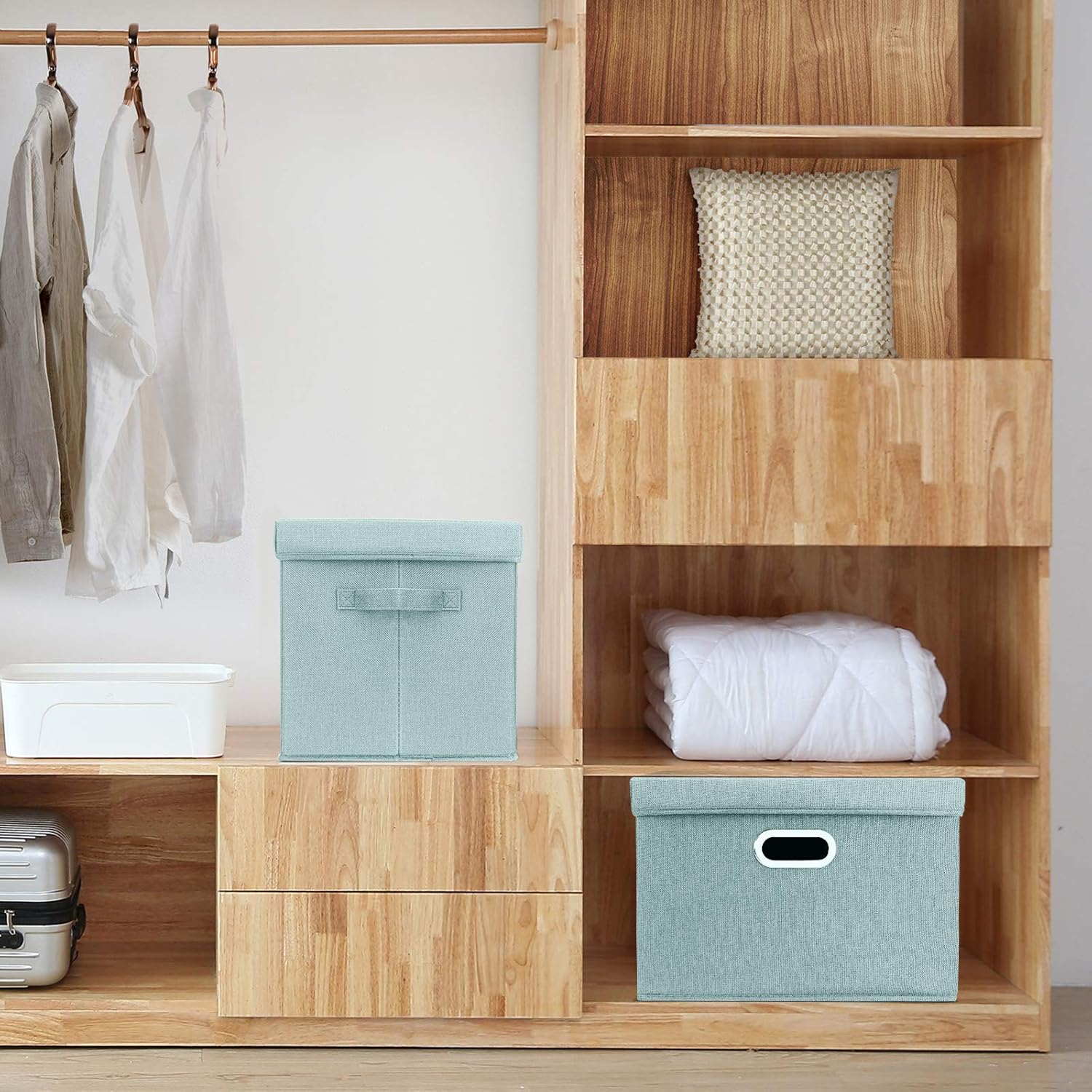 - Washable design allows you to wash the fabric storage bins when they get dirty; These bins for organization can be folded flat when not in use, which helps you save space.