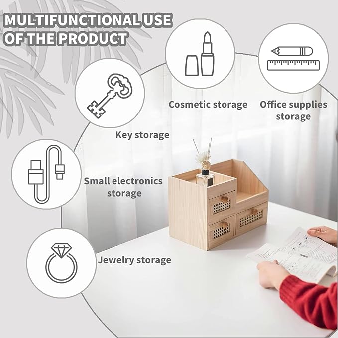 - ✅Space Save-The organizer can eliminate clutter, free desk space. You can put this desktop organizer with drawers in the office, study, dresser, bathroom, etc.It can store office supplies, stationery, household sundries and other items.Not only can be used in the office,household daily storage can also be used.