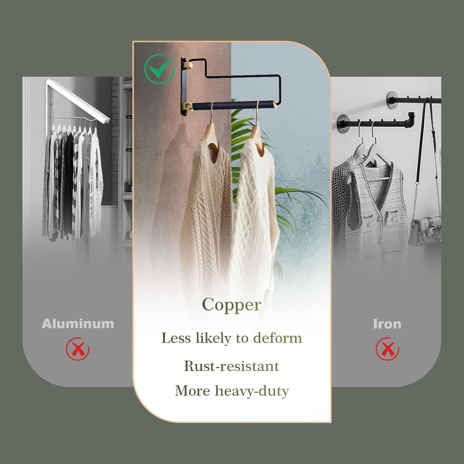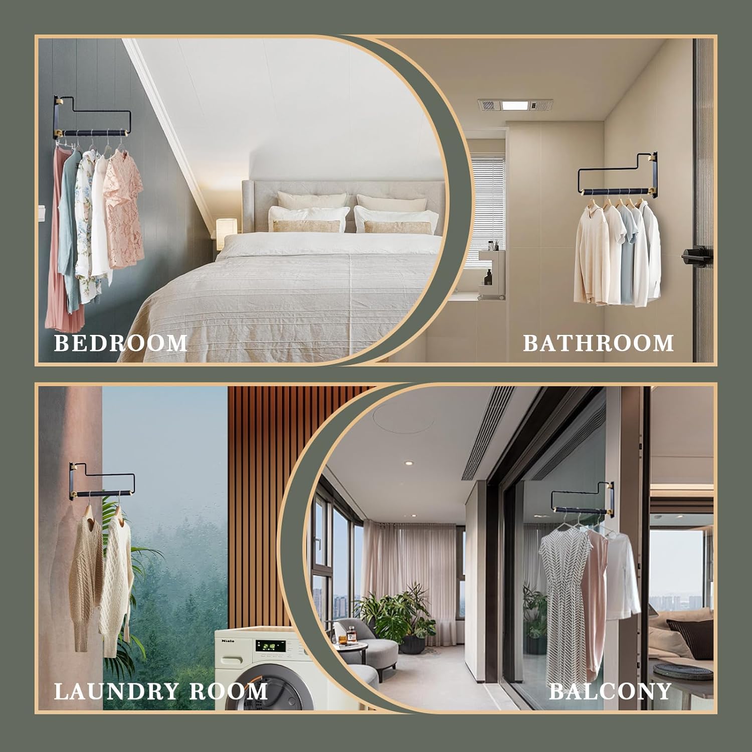 - ✔This is ideal for the space that has in your laundry room or other rooms. It also looks neat and attractive and matches other accessories at home. This hanger rack is made from premium-grade brass and it is sturdy enough to hold jeans, sweaters and jackets even when wet.