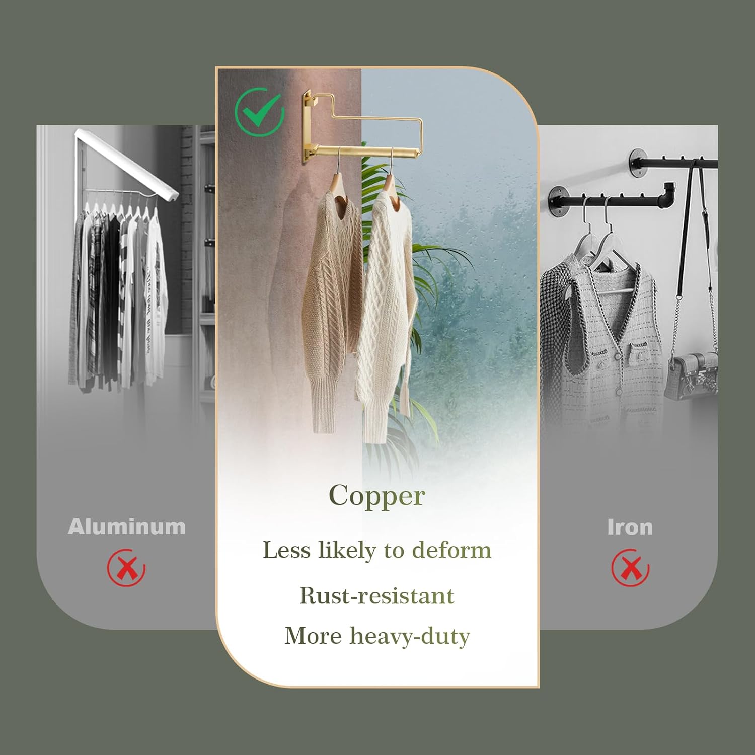 - ✔This is ideal for the space that has in your laundry room or other rooms. It also looks neat and attractive and matches other accessories at home. This hanger rack is made from premium-grade brass and it is sturdy enough to hold jeans, sweaters and jackets even when wet.