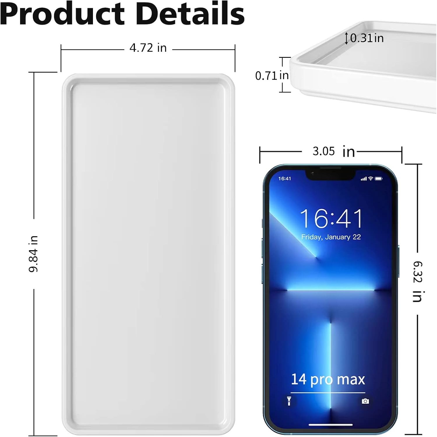 - SIZE & COLOR: Color: White; This small tray outside size is 9.84"x4.72"x0.71", set of 1; Perfect for collect many things; Please confirm the size before purchase
