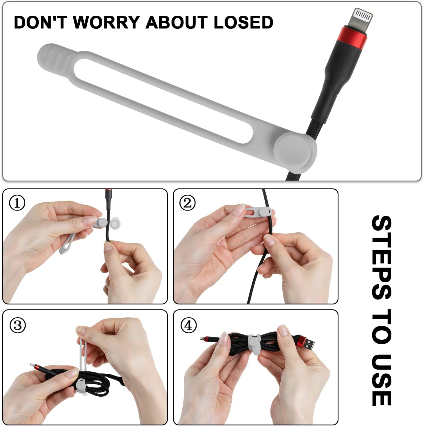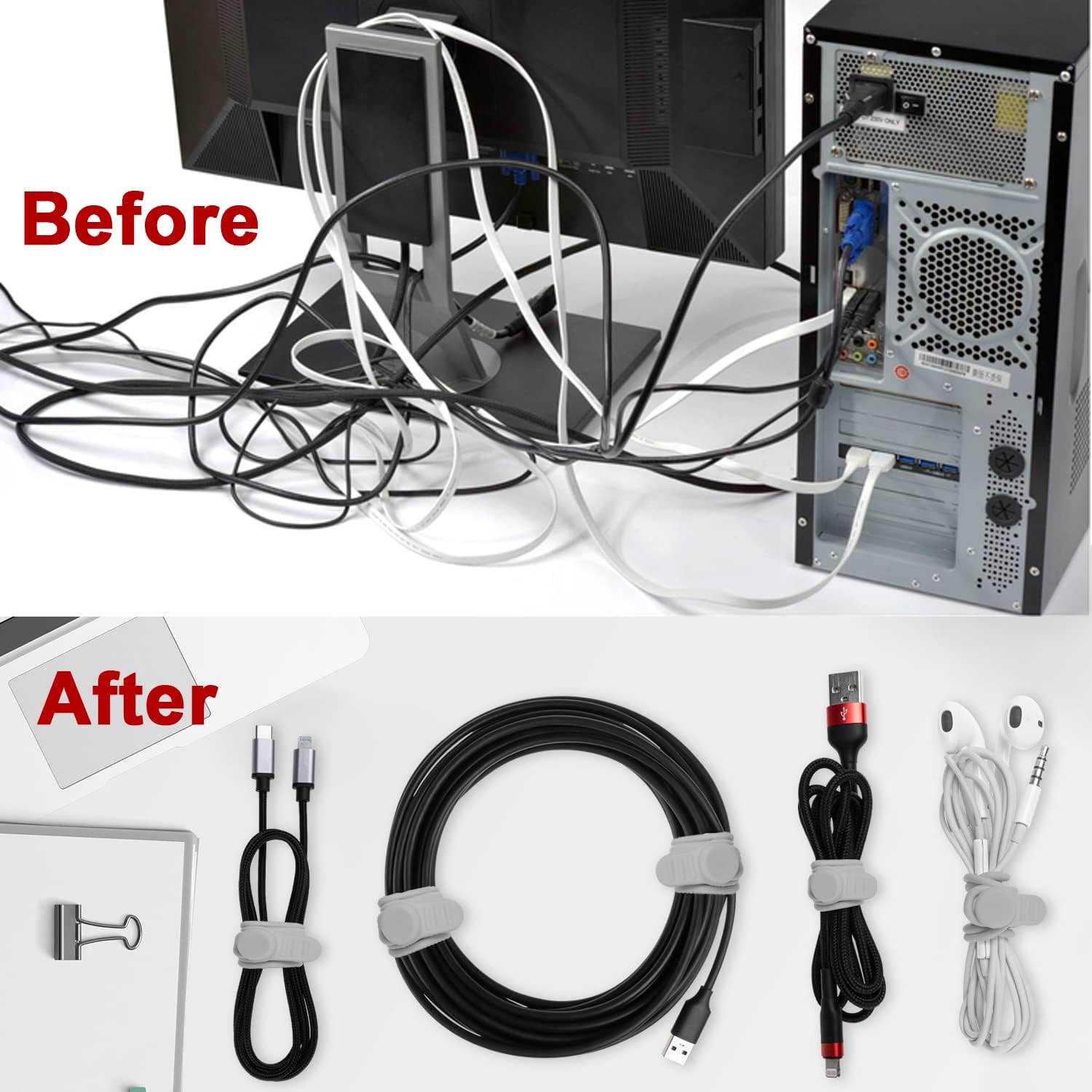 Nearockle 16Pcs Silicone Cable Straps Wire Organizer for Bundling Earphone, Phone Charger, Computer Cords, Reusable Cable Ties Cord Organizer in Home,Office,Kitchen,School(Grey)