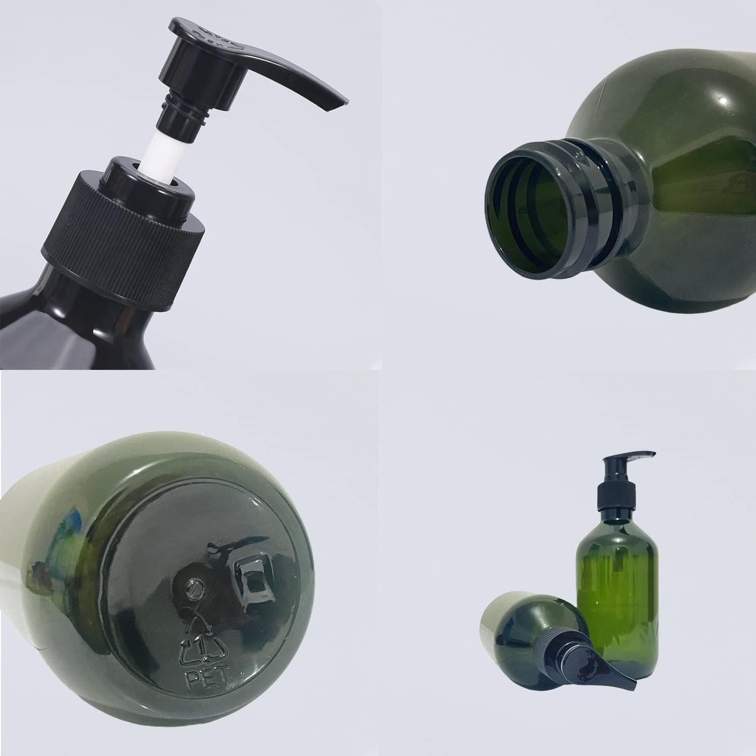 - Material: green plastic pump bottles made from PET materials, is with the plastic pressure pump and it presses very smoothly which bring you the nice feeling of use