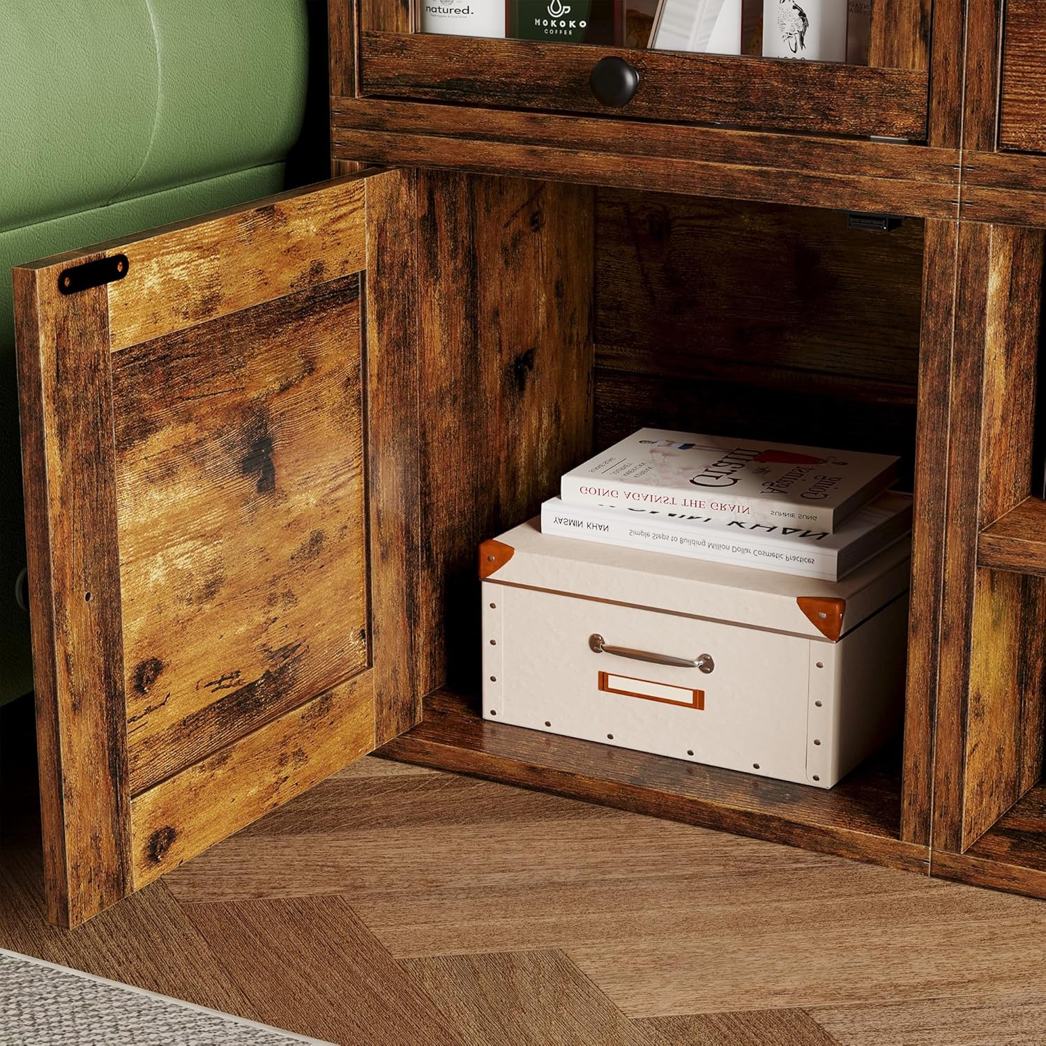 FUSUNBAO Magic DIY Cube Storage Organizer Stackable Cubes for Home Books Clothes Toy-Modular Cubby Storage System-Office Cubical-Bookcase Closet (Antique Brown, Door Cube)