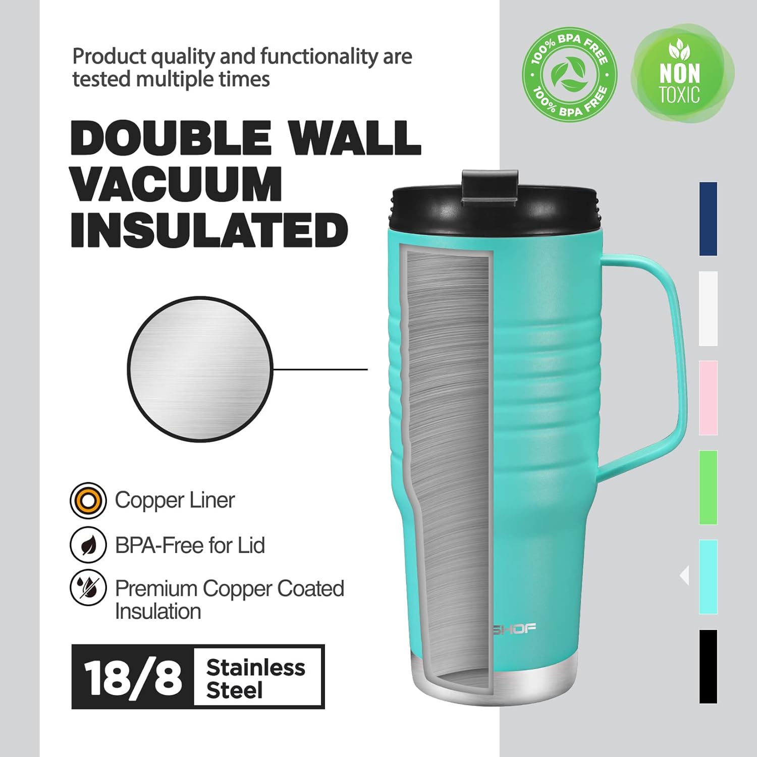 - A VARIETY OF COLORS FOR YOU TO CHOOSE: This 24 oz travel mug comes in 6 colors - White/Lake Blue/Green/Black/Pink/Navy Blue, the colored coating finish of the mug body is very textured, which is comfortable to hold and non-slip; The gorgeous colors also make it an excellent choice for holiday gifts