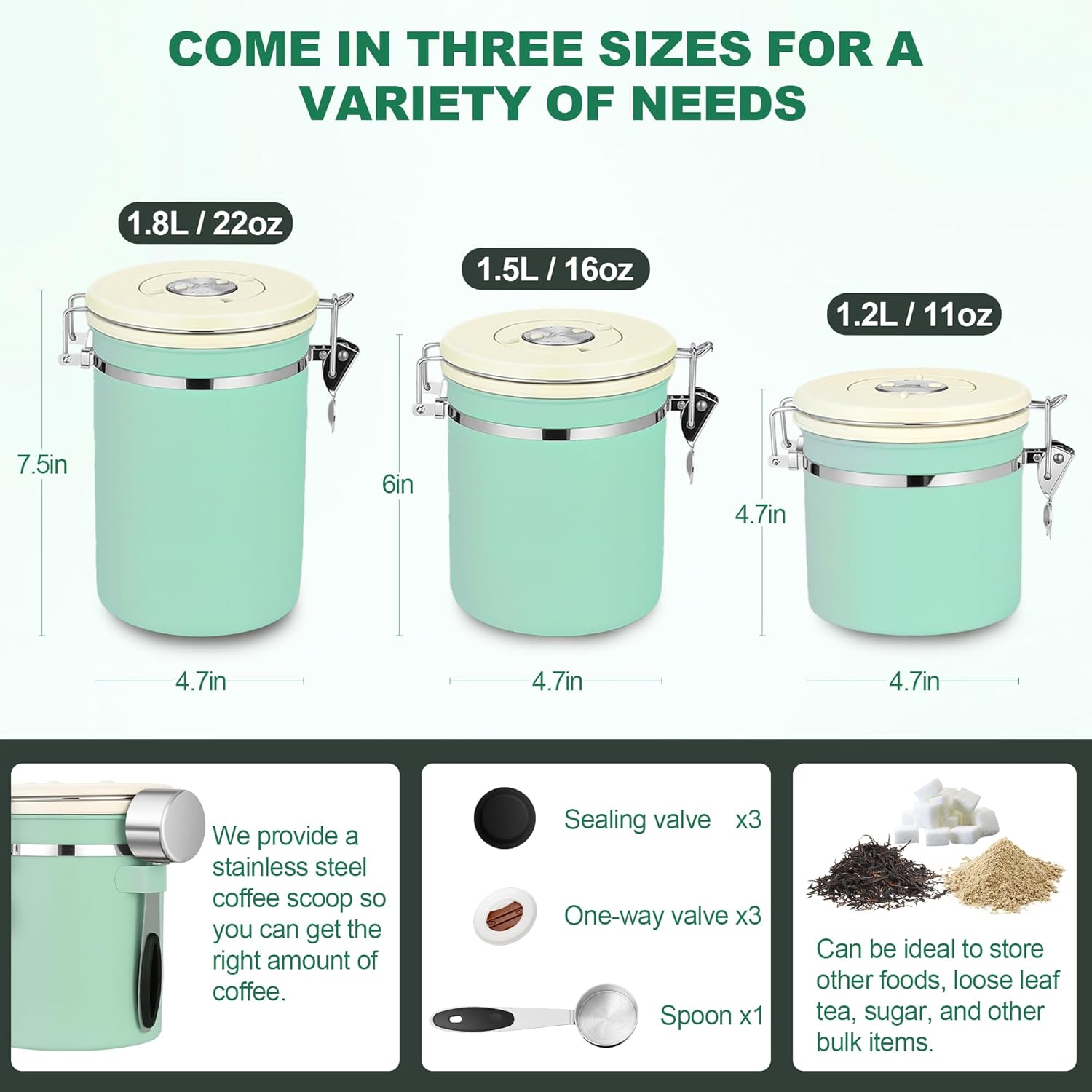 ShanSon Coffee Canister Airtight Coffee Container Stainless Steel Coffee Bean Storage Container with Scoop Coffee Canister for Beans Grounds Sugar Flour Tea Cereal,22OZ,Green