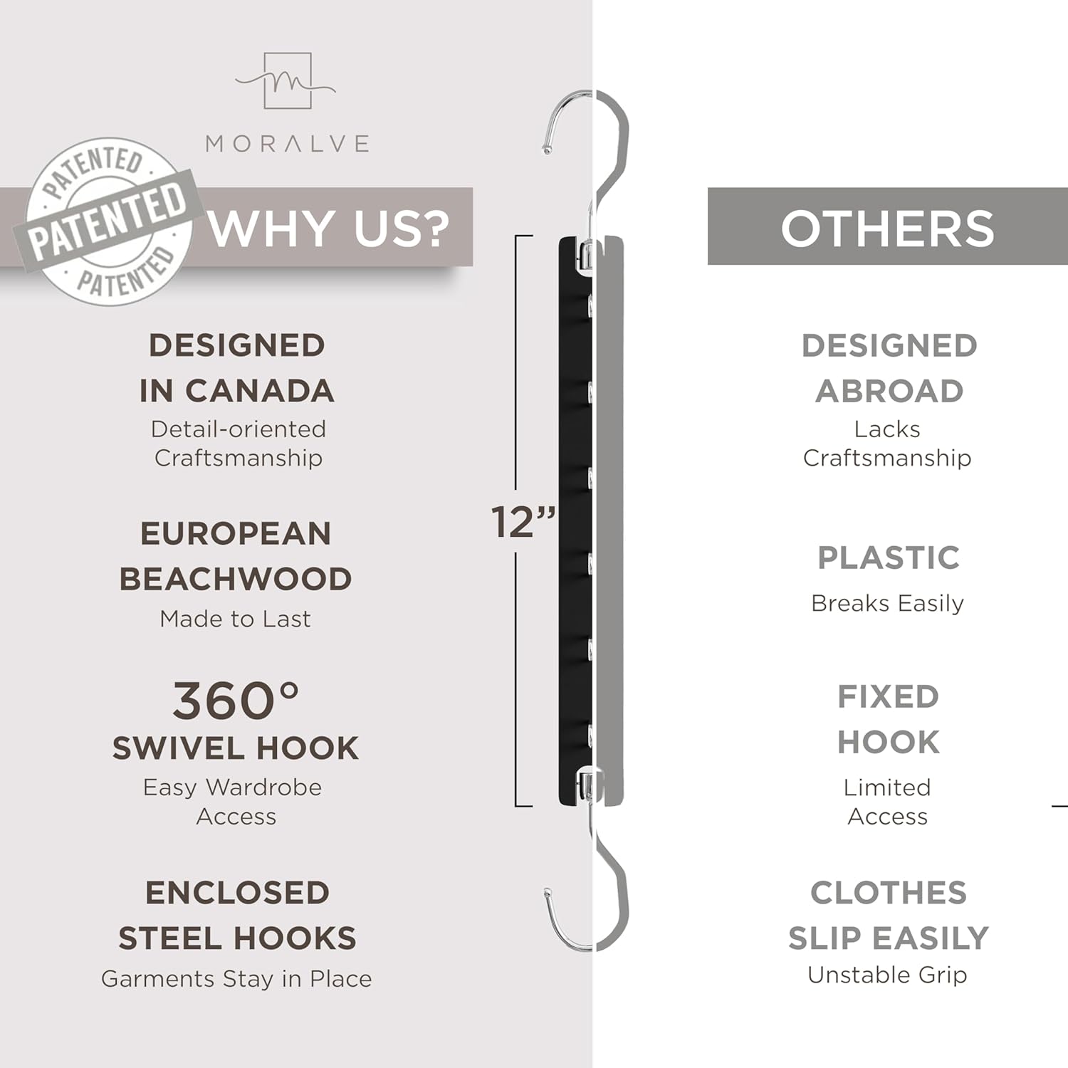 - PATENTED 360 SWIVEL DESIGN - Load or unloading your items from this clothing hanger organizer is easy thanks to our 360 degree swivel hook. Our folding hangers space saving low profile design and 6 secure enclosed hooks results in a carefully crafted hanger storage that keeps clothes secure while fitting your unique closet space.