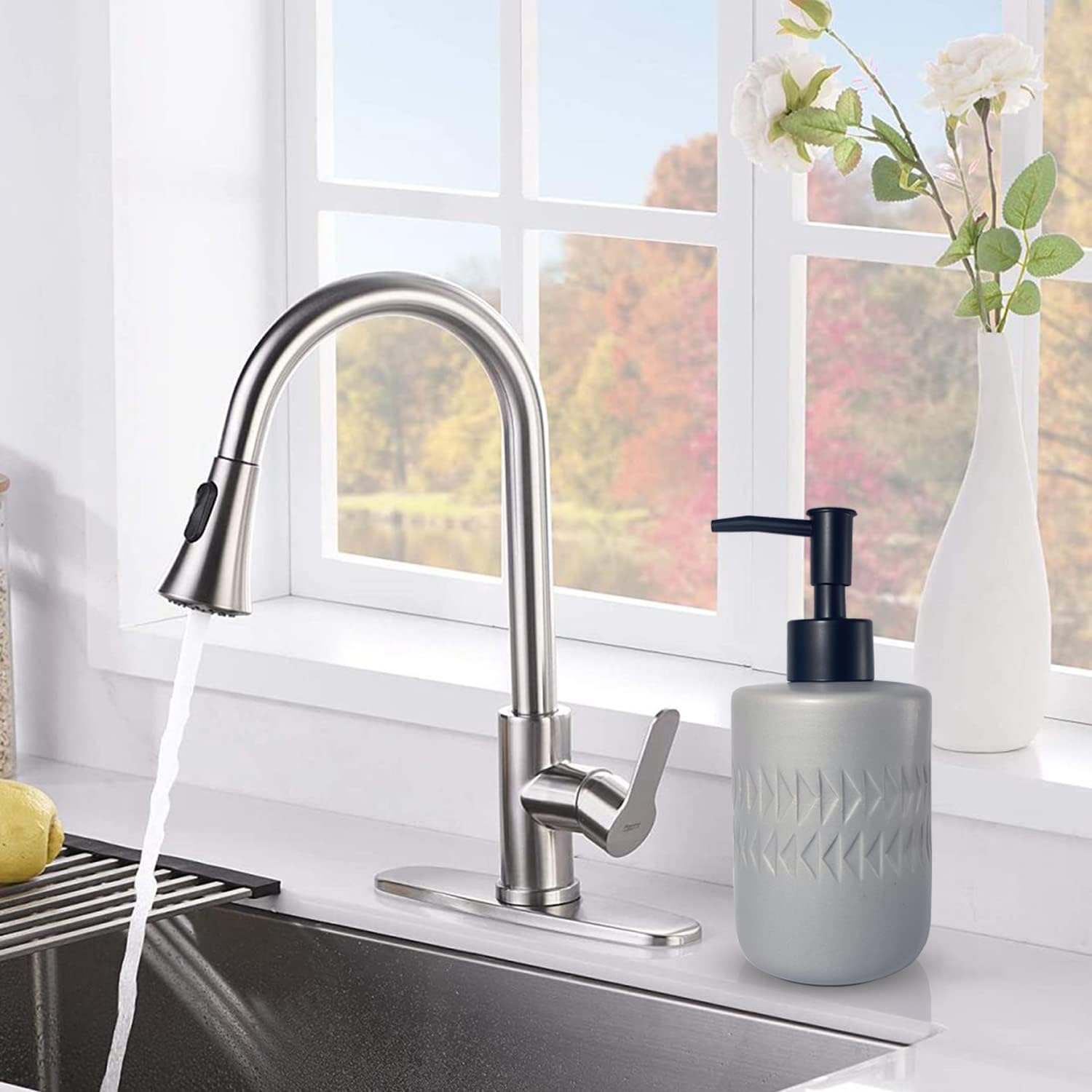 - -Matte Glazed Porcelain:This liquid soap dispenser is made of high-quality pottery clay after high temperature firing.The bottle body is coated with matte glaze,which is makes the product look more premium,and easy to clean.