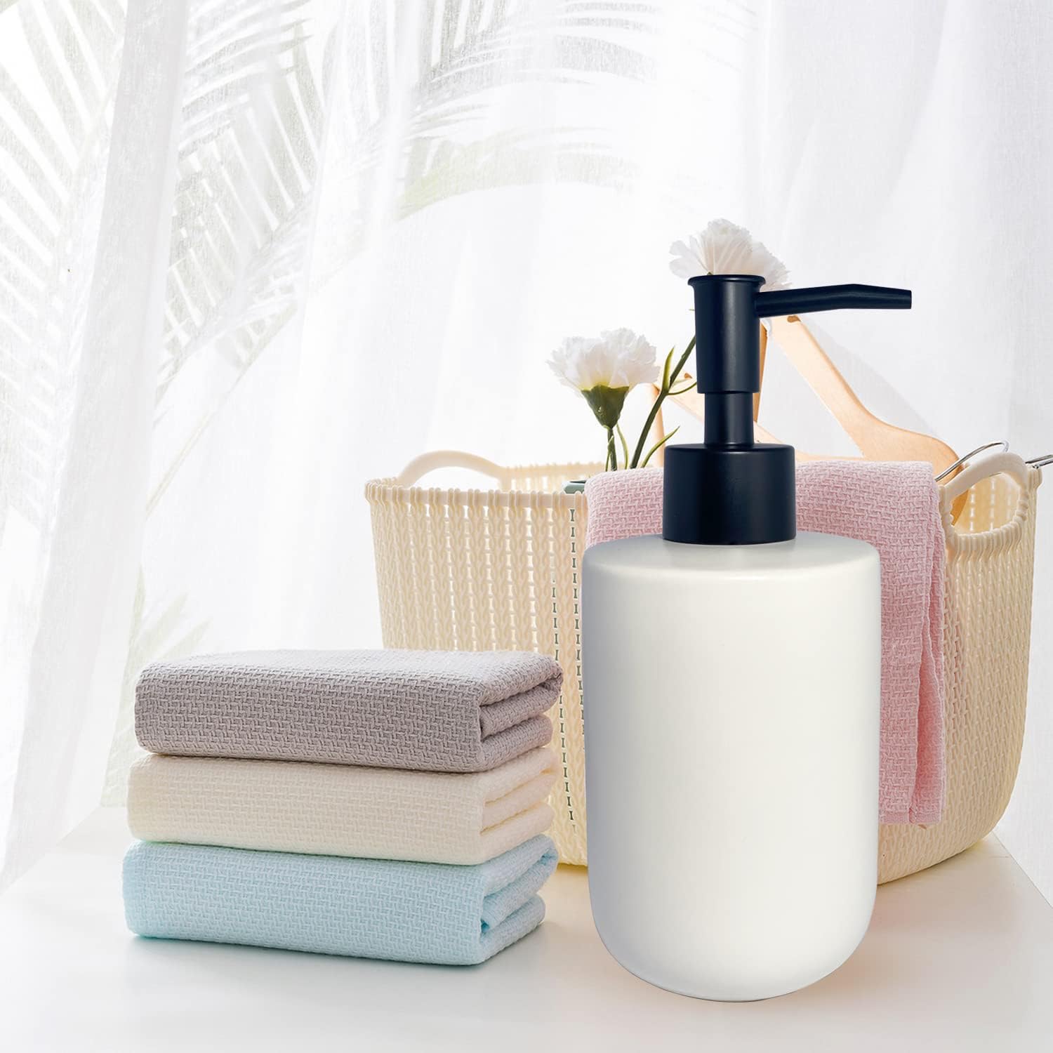 - -Matte Glazed Porcelain:This liquid soap dispenser is made of high-quality pottery clay after high temperature firing.The bottle body is coated with matte glaze,which is makes the product look more premium,and easy to clean.