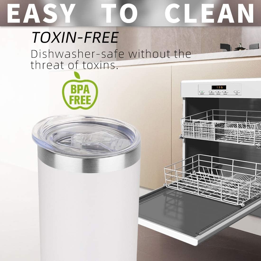 - LIFETIME DURABILITY:304 food grade stainless steel body, BPA free, healthier than plastic cup. The insulated tumbler never sweat due to the Vacuum insulated design. Powder coating on the outside fits more comfortably in your hand, looks good, anti-slip