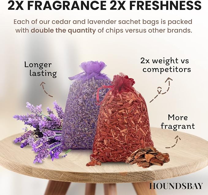 - Scent : 10 Cedar & 10 Lavender Sachets