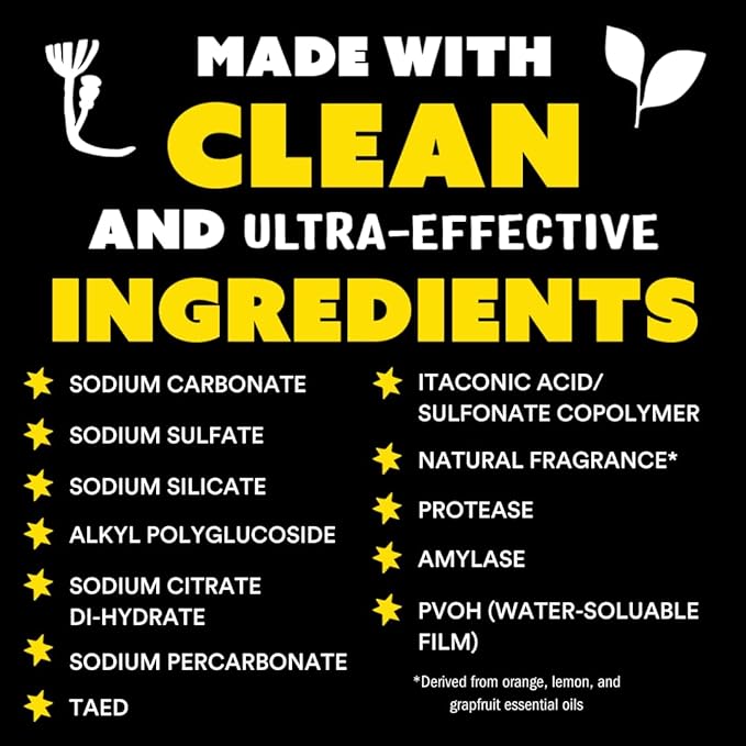 - WHAT’S INCLUDED: One 60 count bag of Dishwasher Detergent Pods. Free of harsh synthetic fragrances, dyes, and other harmful chemicals such as ethoxylates.