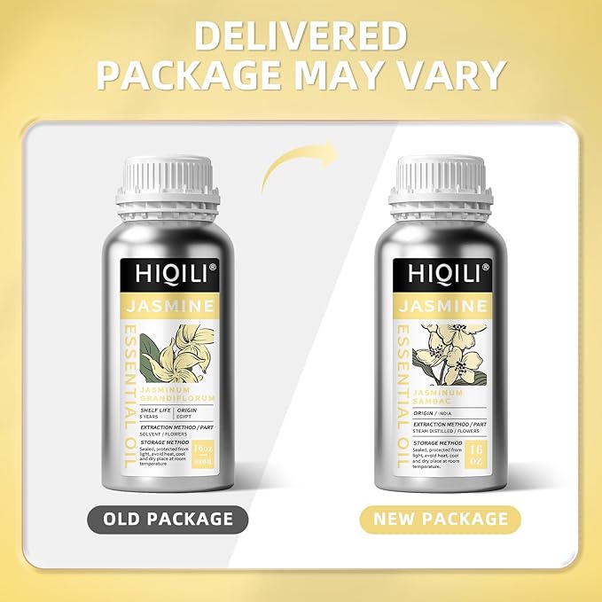 HIQILI 16 Fl Oz Jasmine Essential Oil, 100% Pure Natural for Diffuser, Hair, Skin, Perfume Making - 500ML