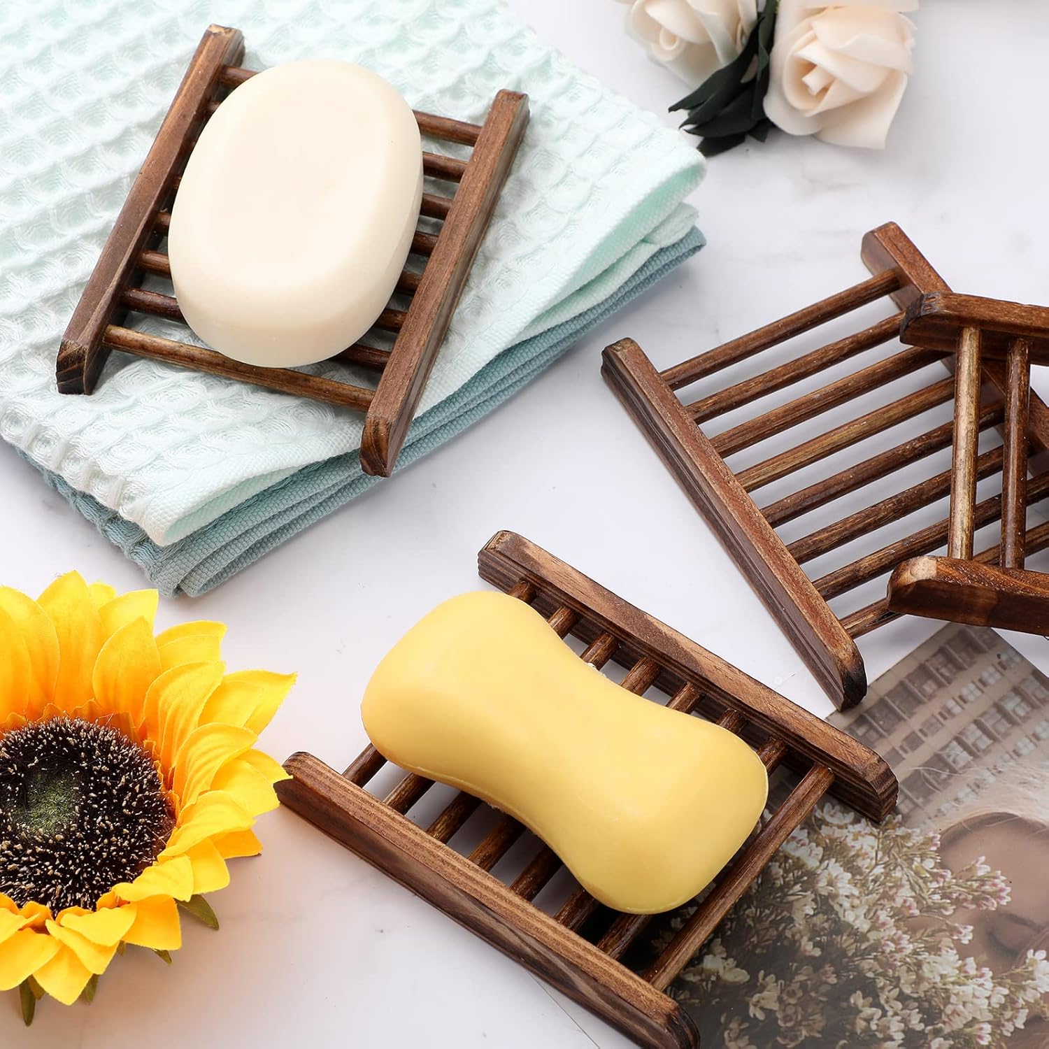 - Wide Rang of Applications: these bamboo soap dish holders are available in bathrooms, kitchens and other places to place your soaps, dish sponges, cleaning balls and other things, reducing stickiness between soap and base