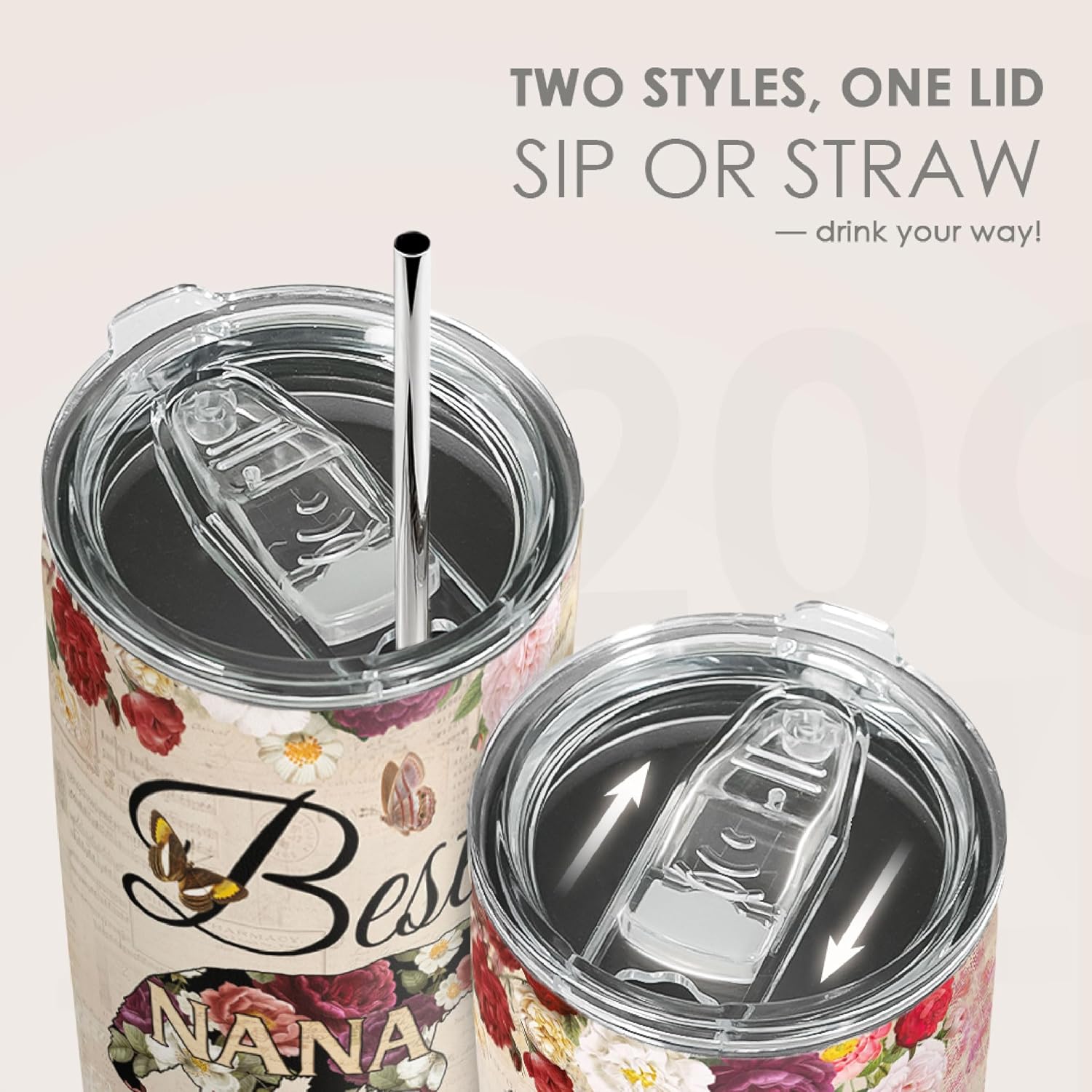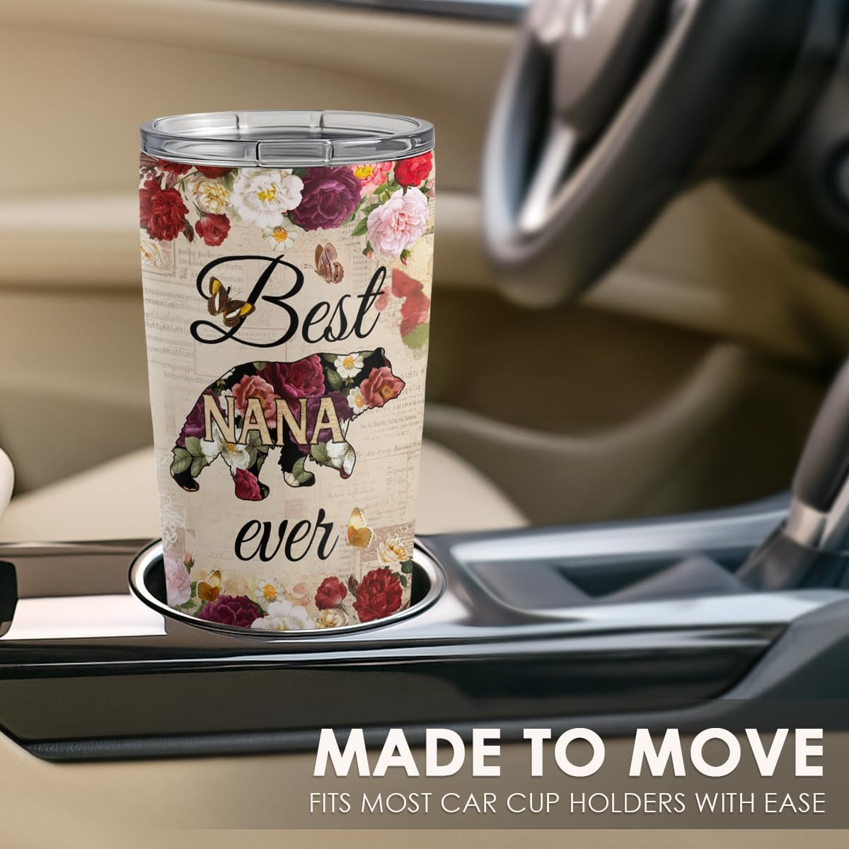 SANDJEST Best Nana Ever Tumbler Gift for Grandmas from Grandkids - 20oz Floral Insulated Stainless Steel Travel Mug Granny Christmas, Birthday, Mother's Day Gifts for Nana, Gigi from Grandchildren