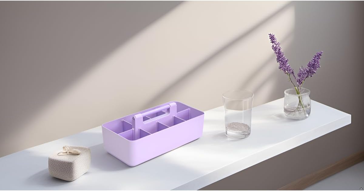 - PORTABLE: Feature easy-carry round smooth handle to make it simple to transport goods from shelf to cabinet or desktop; Just grab and go; The perfect storage and organizing solution for modern living spaces; Open tops and divided compartments make it easy to see what is inside and quickly grab what you need; Use these convenient storage bins to keep office desk items all in one place; Great for children's crafting items and school supplies too; Perfect for home or commercial workspace
