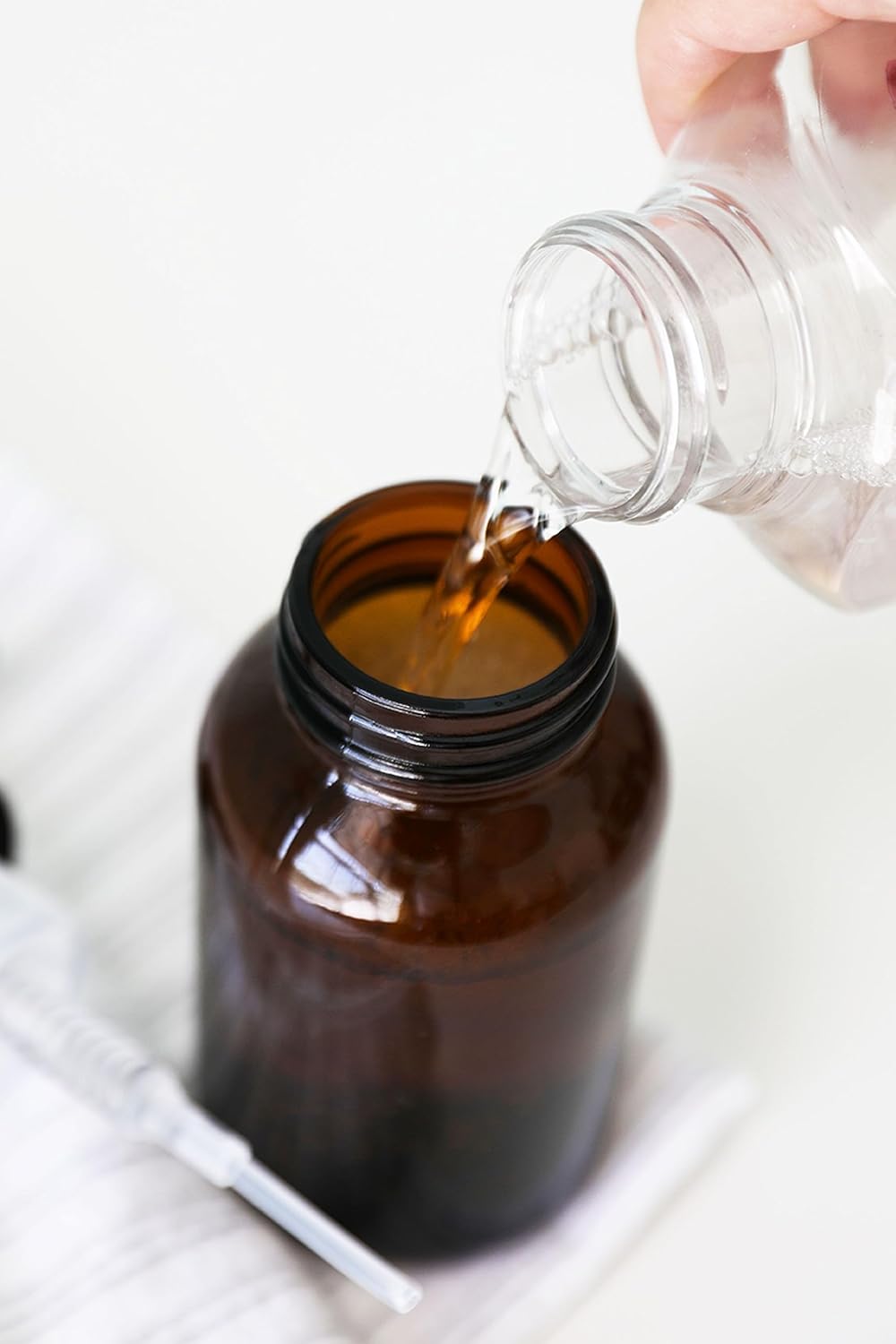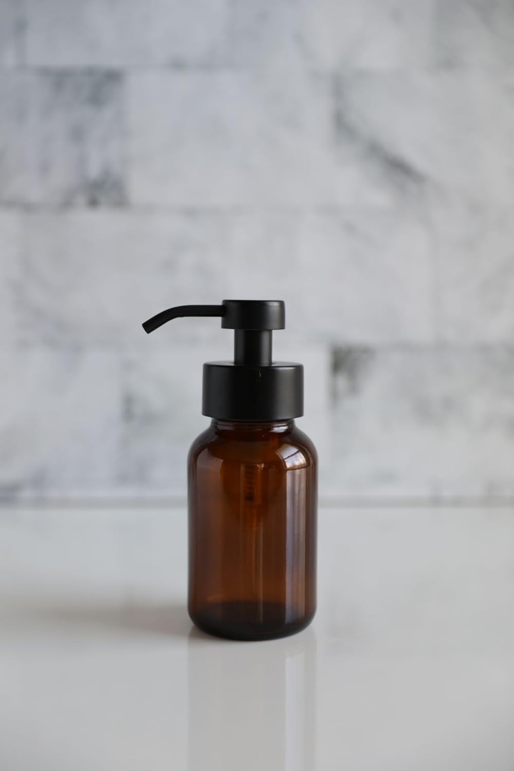 Rail19 Amber Glass Apothecary Foaming Soap Dispenser with Metal Pump - for Kitchen and Bathroom Countertop, 8.5oz (Black)